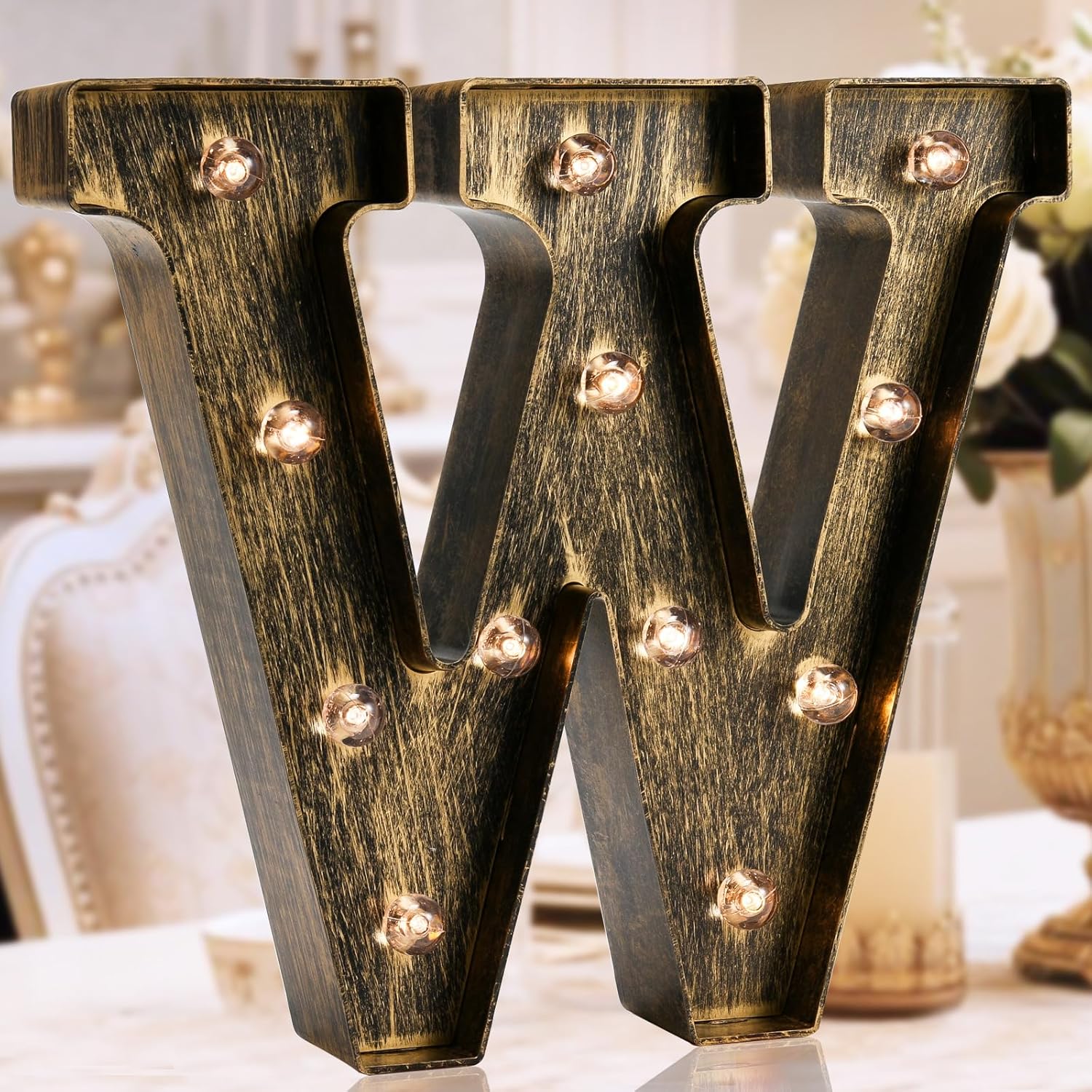 OYCBUZO Golden Black Led Marquee Letter - Industrial, Vintage Style Light Up Alphabet Letter Sign for Cafe Wedding Birthday Party Christmas Lamp Home Bar Initials Decor - W
