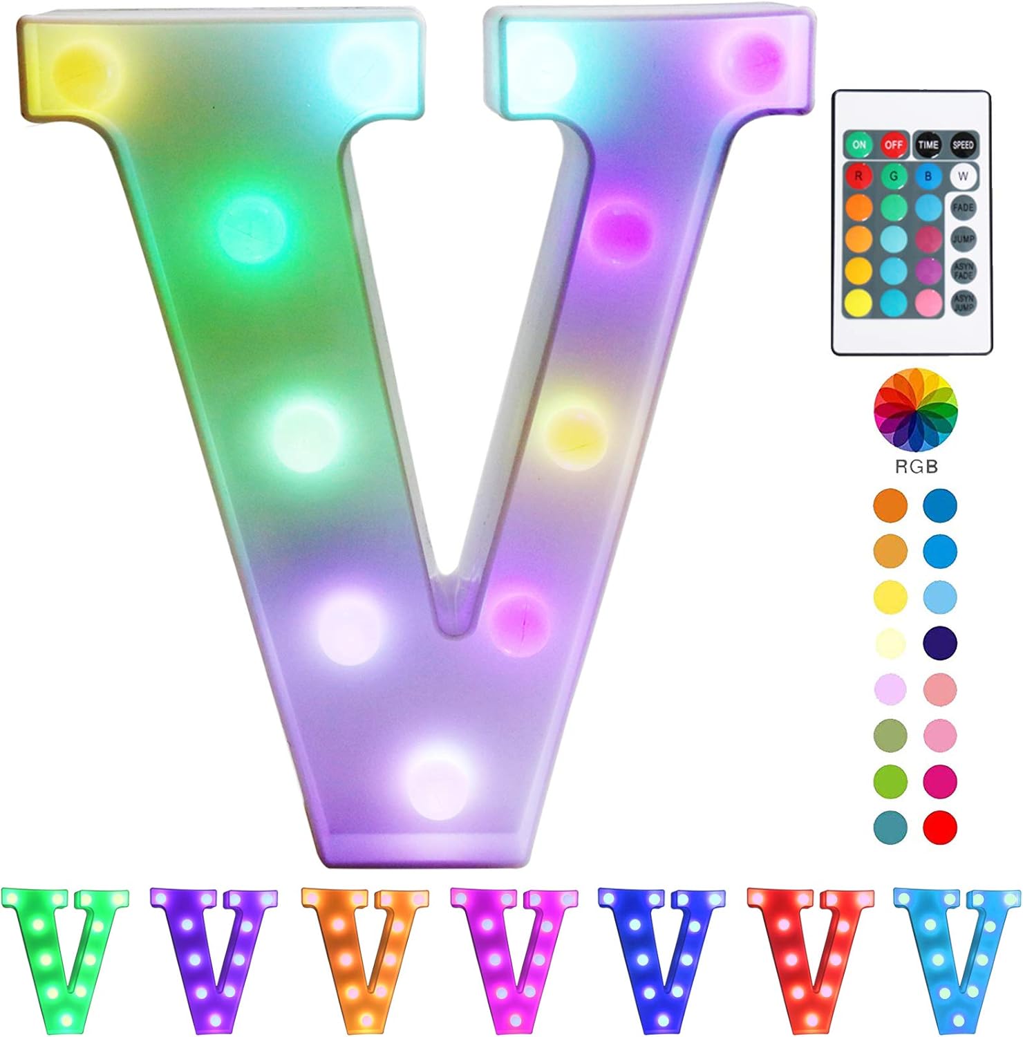 Pooqla Colorful LED Marquee Letter Lights with Remote – Light Up Marquee Signs – Letters with Lights for Anniversary Party Room Decoration - Birthday Gift for Boys Girls Women Men - Multicolor V