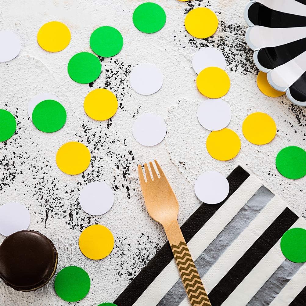 - Confetti Yellow,Green,White. 200pc circle dots confetti,each dots 1.2’’ in diameter,high quality craft paper confetti