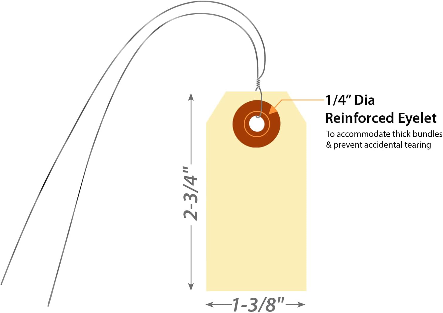 - TEAR RESISTANT: Tags include a reinforcing fiber patch for durability and stiffness. Eyelet diameter is 1/4 inch.