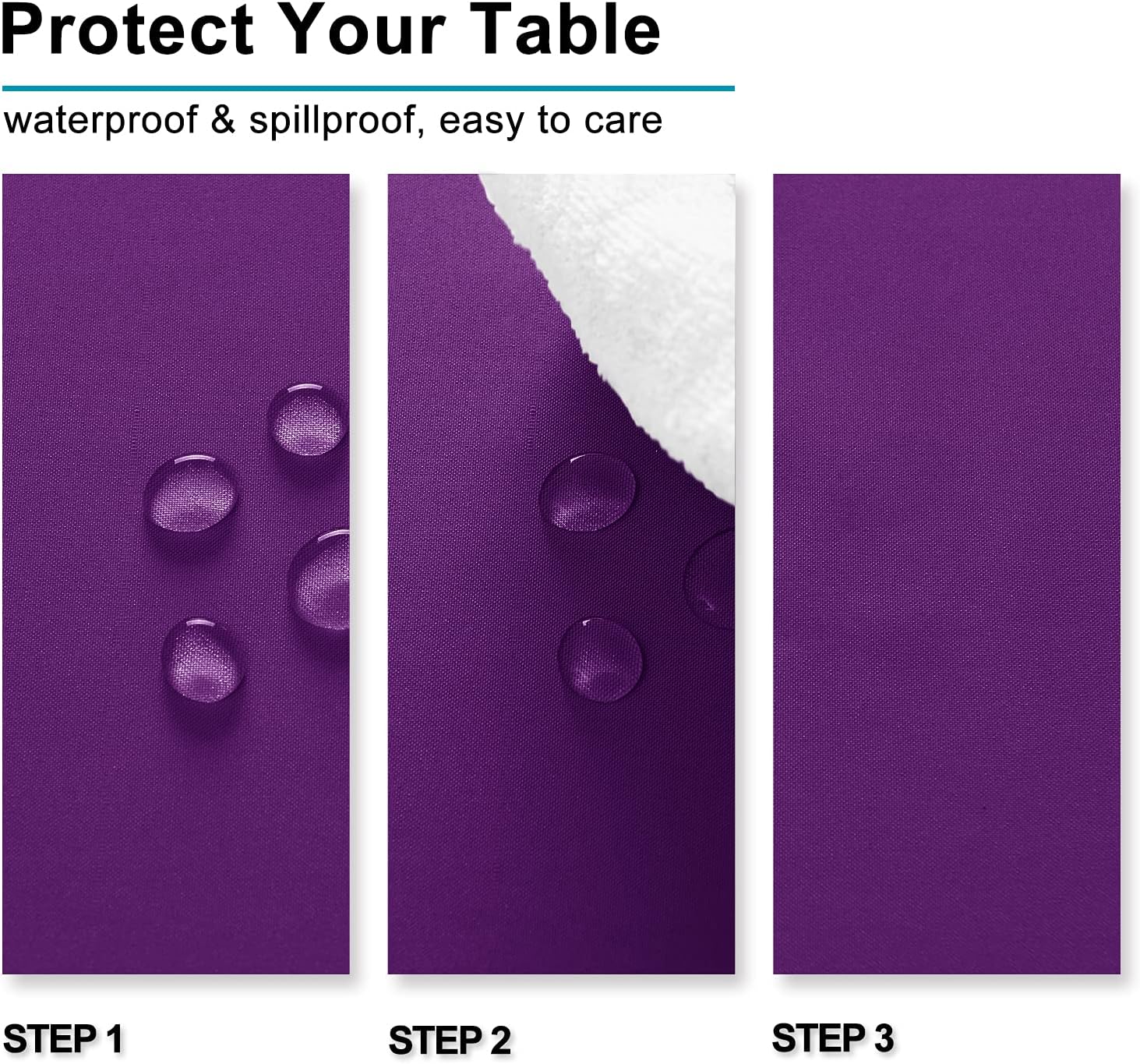- Waterproof and Spill-proof Table Cloths: Featuring a fade and spill resistant polyester fabric, our tabletop covers easily protect your tables and furniture from scratches, stains and sun rays