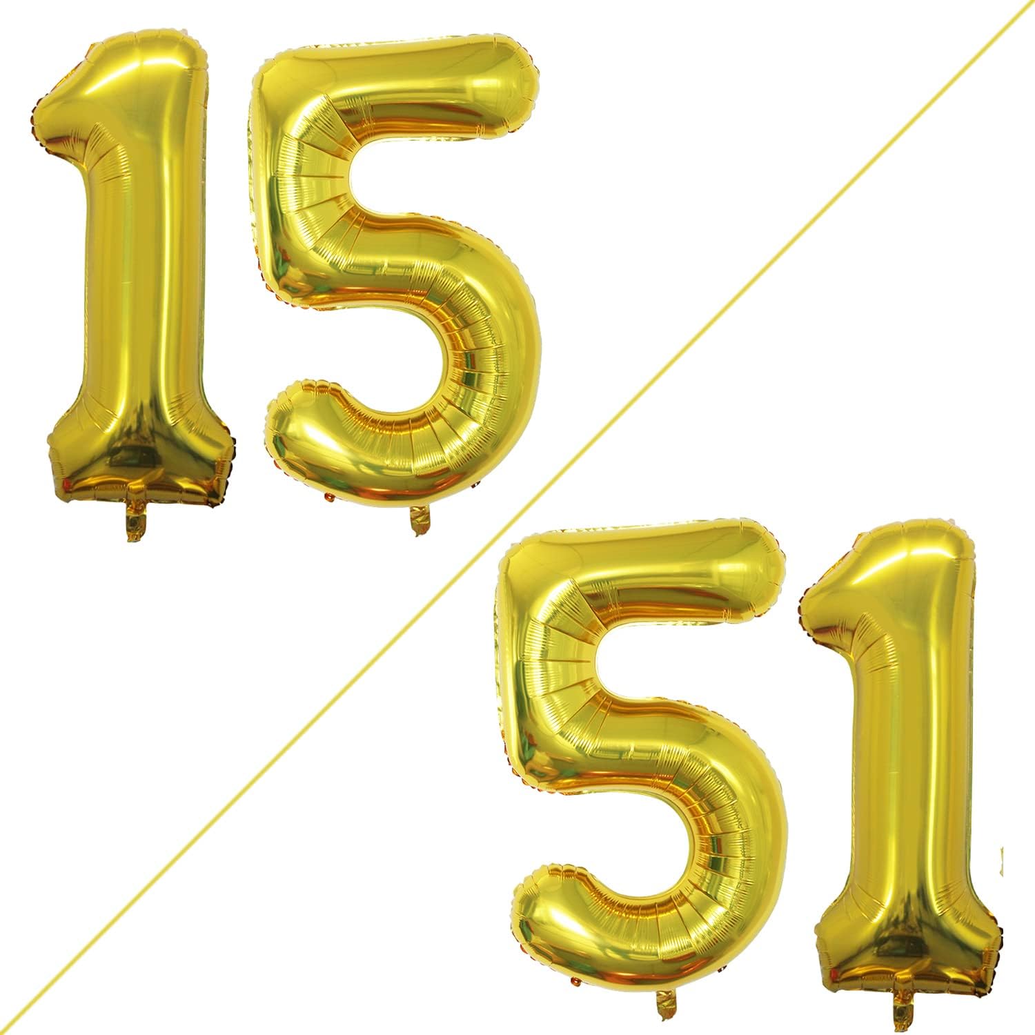 GOER Number 15 Balloons for 15th Birthday Sweet 15 Party Decorations,42 Inch Jumbo Foil Helium 51 Balloons for 51st Birthday Party Decoration (Gold)