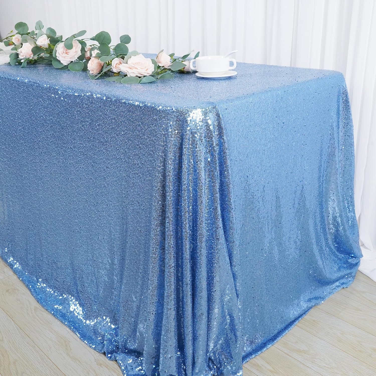 SquarePie Sequin Tablecloth 60 x 102 Inch Baby Blue Sparkly Table Linen for Wedding Party