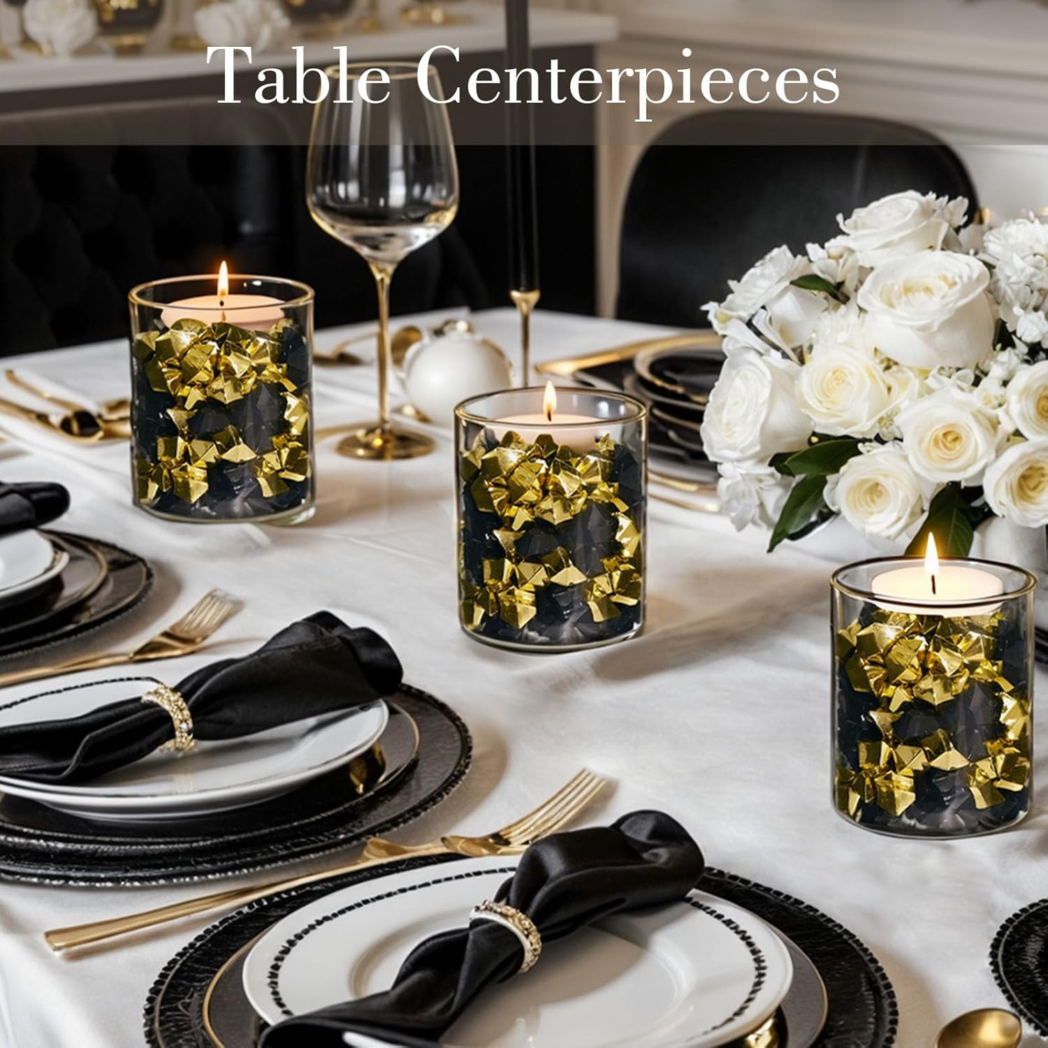 - Package includes 150PCS gold acrylic ice rocks.