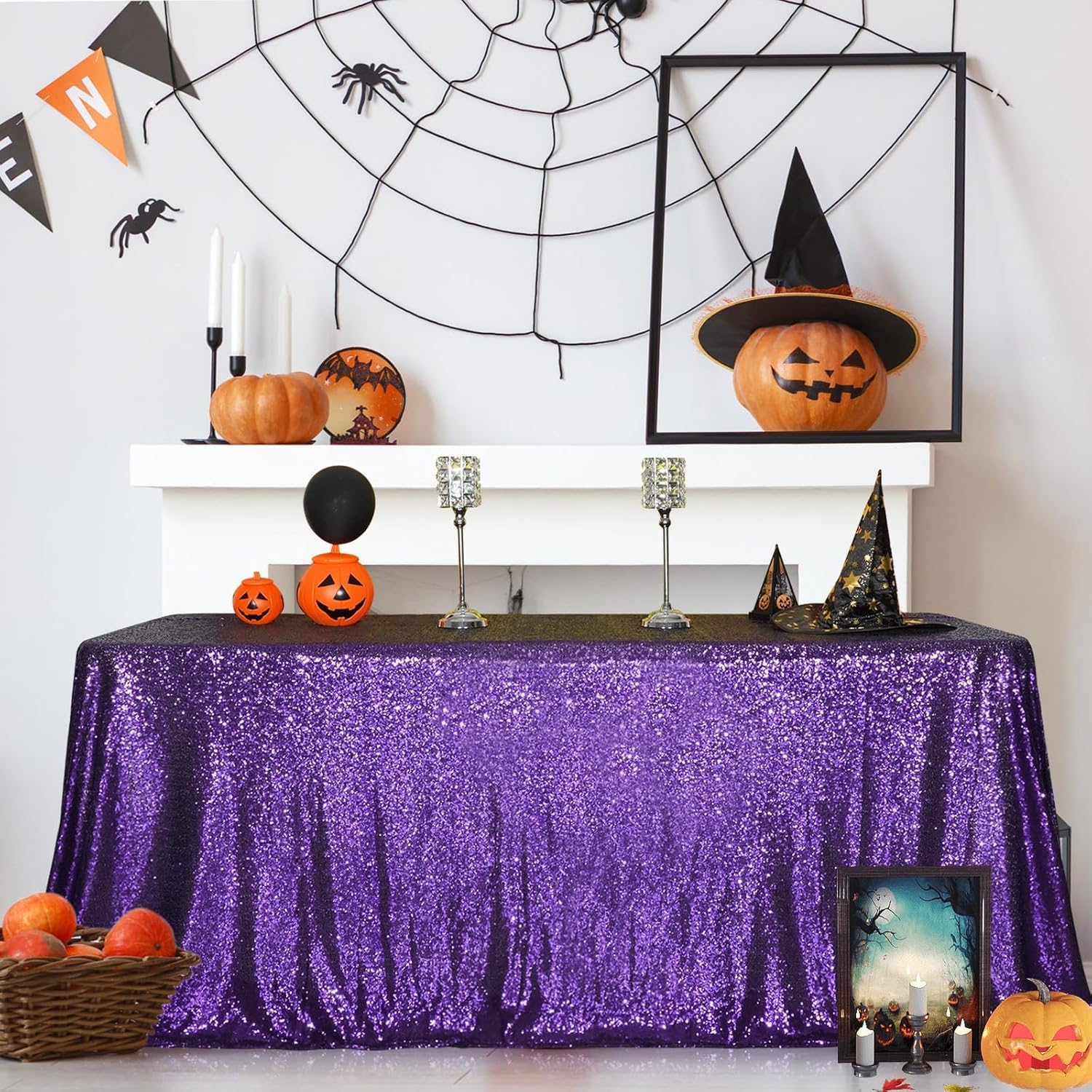 SquarePie Sequin Tablecloth 60 x 120 Inch Purple Sparkly Table Cloth for Halloween Wedding Party