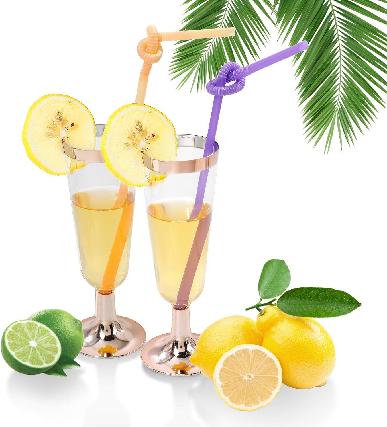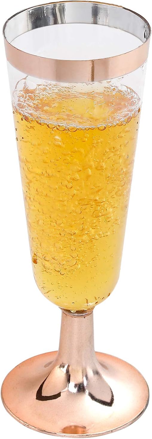 I00000 50 Pack Rose Gold Plastic Champagne Flutes, 5 Oz Fancy Rose Gold Champagne Glasses Plastic Classicware Toasting Glasses Disposable Party Cocktail Cups for Wedding & Party