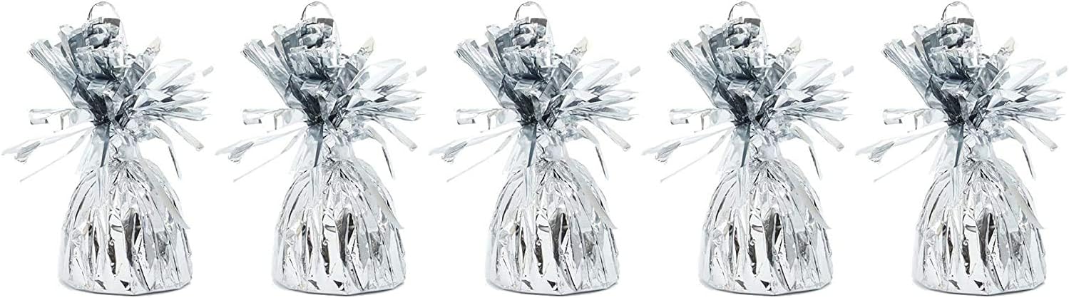 - Secure Balloon Anchors: Each weight is crafted to hold balloons firmly, whether used indoors or outdoors, offering stability in various settings. With a round shape and silver tinsel accents, they add elegance to your silver balloon arrangements