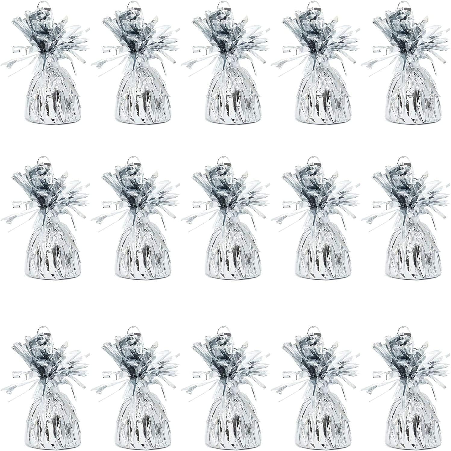 BLUE PANDA Balloon Weights - 4.5 x 2.35 in, Silver, 15 Pack - Table Balloon Stand Weight & Holder with Tinsel Tassel Fringe & Hook