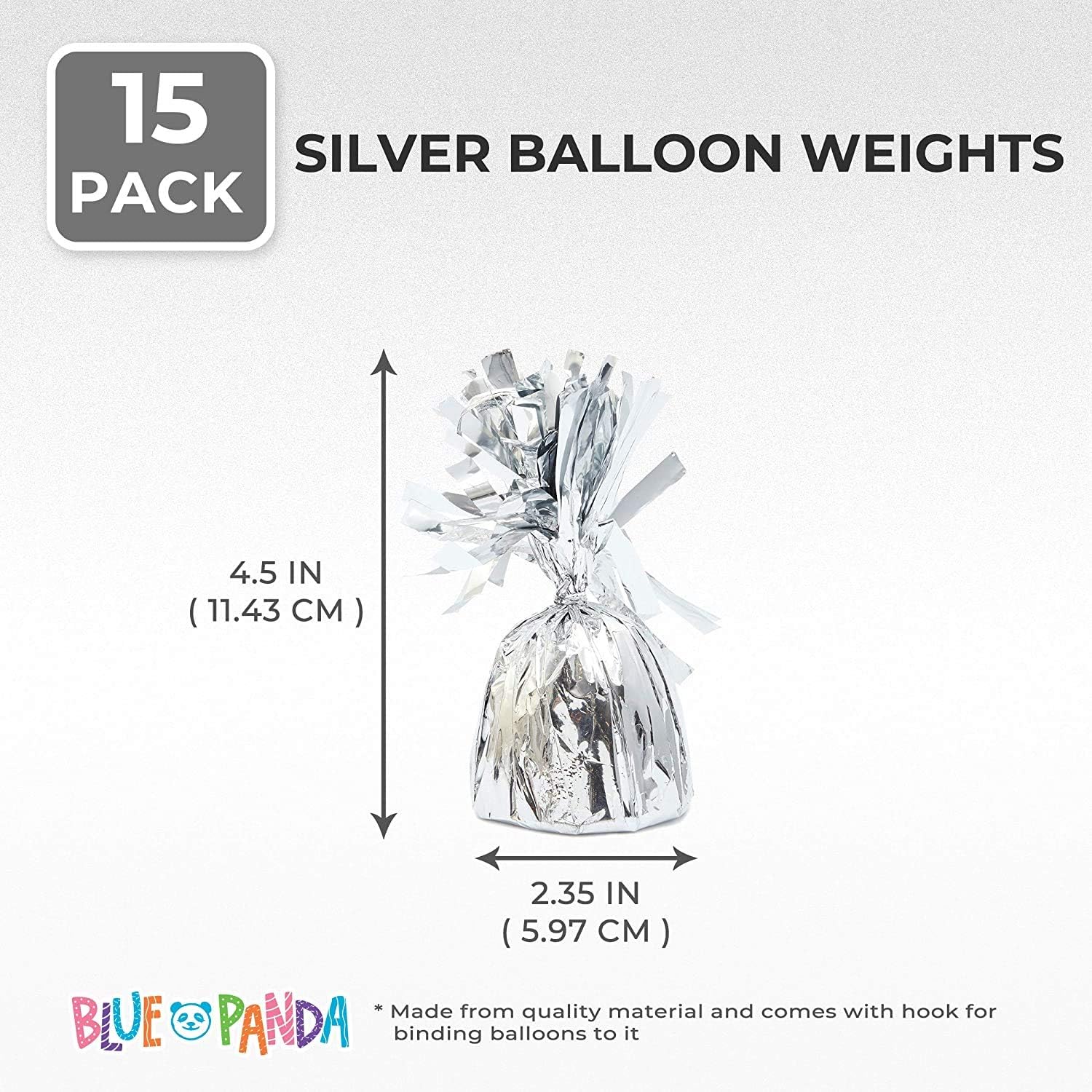 - Stability in Style: The Silver Balloon Weights by Blue Panda are ideal for securing balloon decorations while enhancing the aesthetic of any event. Their metallic silver finish and included hook make these balloon weights both practical and decorative