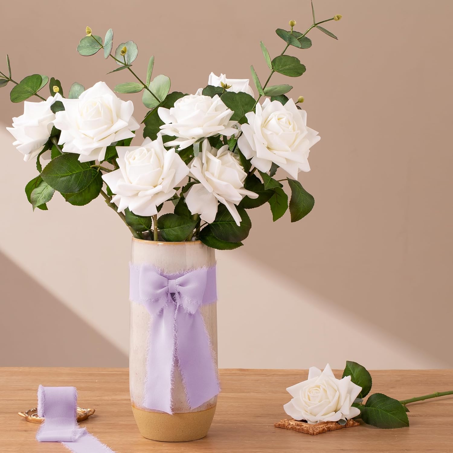 - 【Size and Color】Each roll of chiffon ribbon is 2 inches wide and 7 yards long, perfect for various creative uses such as making bows, decorating wreaths, and DIY crafts. This set includes 3 rolls light purple ribbons. These vibrant frayed ribbons add a rustic charm to your creations, ideal for bouquet wrap or gift ribbon.