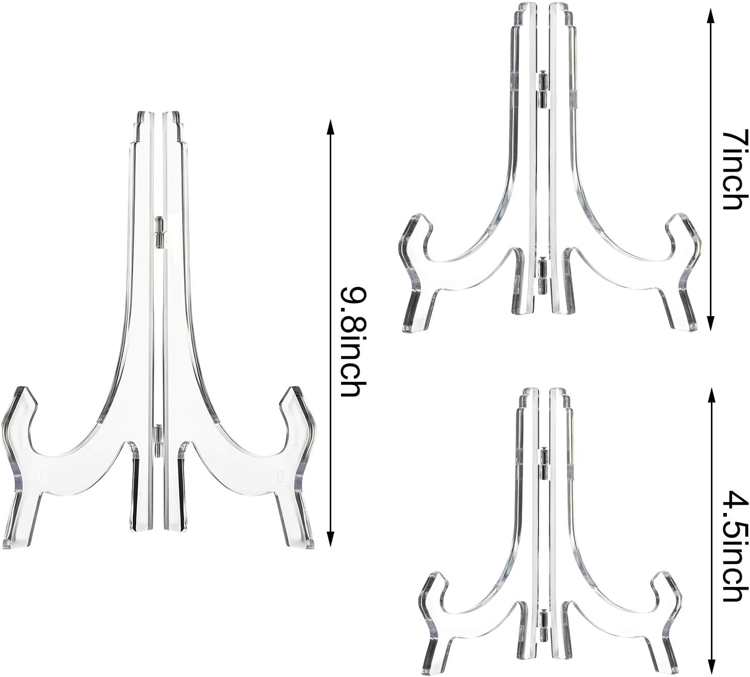 - Comprehensive Groups: 3 pieces clear plastic easels totally, 3 size: 4.5 inches, 7 inches, 9.8 inches, enough quantity for you to hold different sizes items