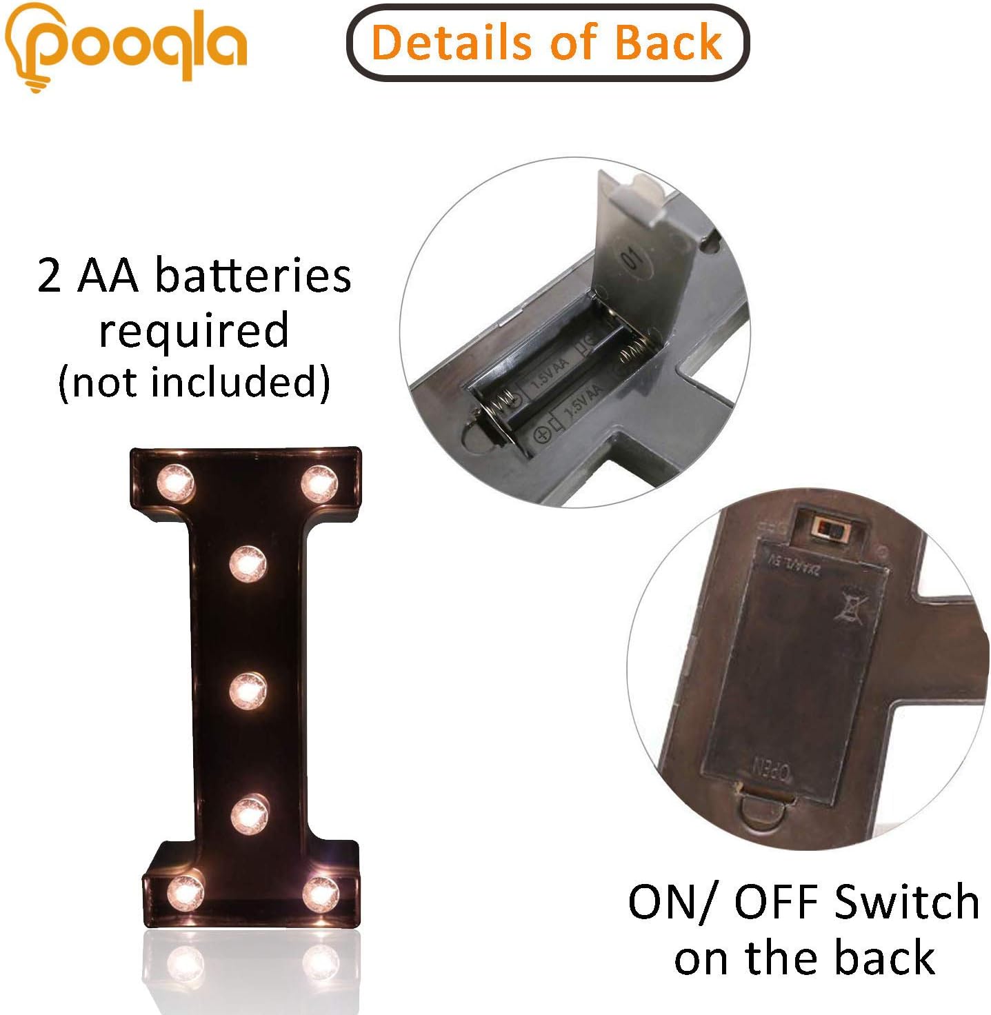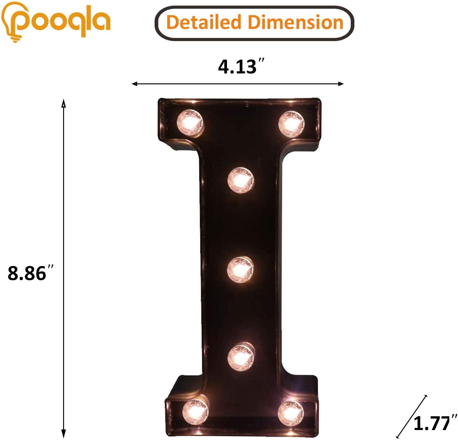 Pooqla Decorative LEDs Illuminated Letter Marquee Sign - Alphabet Marquee Letters with Lights for Wedding Birthday Party Christmas Night Lights Lamp Home Bar Decoration I, Black