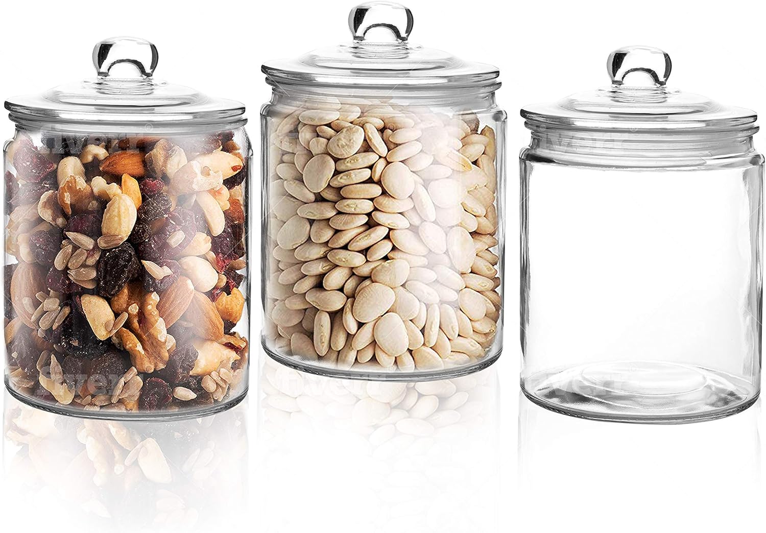Set of 3 Glass Jar with Lid 1 Liter | Airtight Glass Storage Container for Food, Pasta, Coffee, Candy, Dog Treats, Snacks | Glass Organization Canisters for Home & Kitchen | 34 Ounces