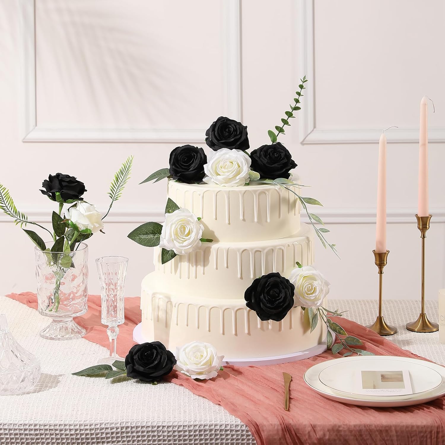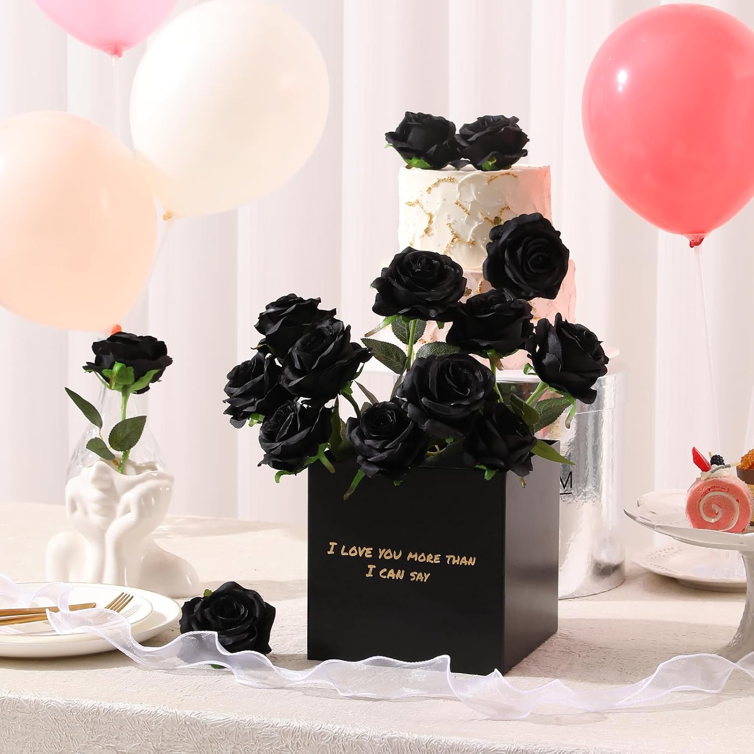 Tifuly Black Roses Artificial Flowers -12 pcs Realistic Single Long Stem Fake Silk Roses Bouquet for Party Home Wedding Centerpiece Office Halloween DIY Decor