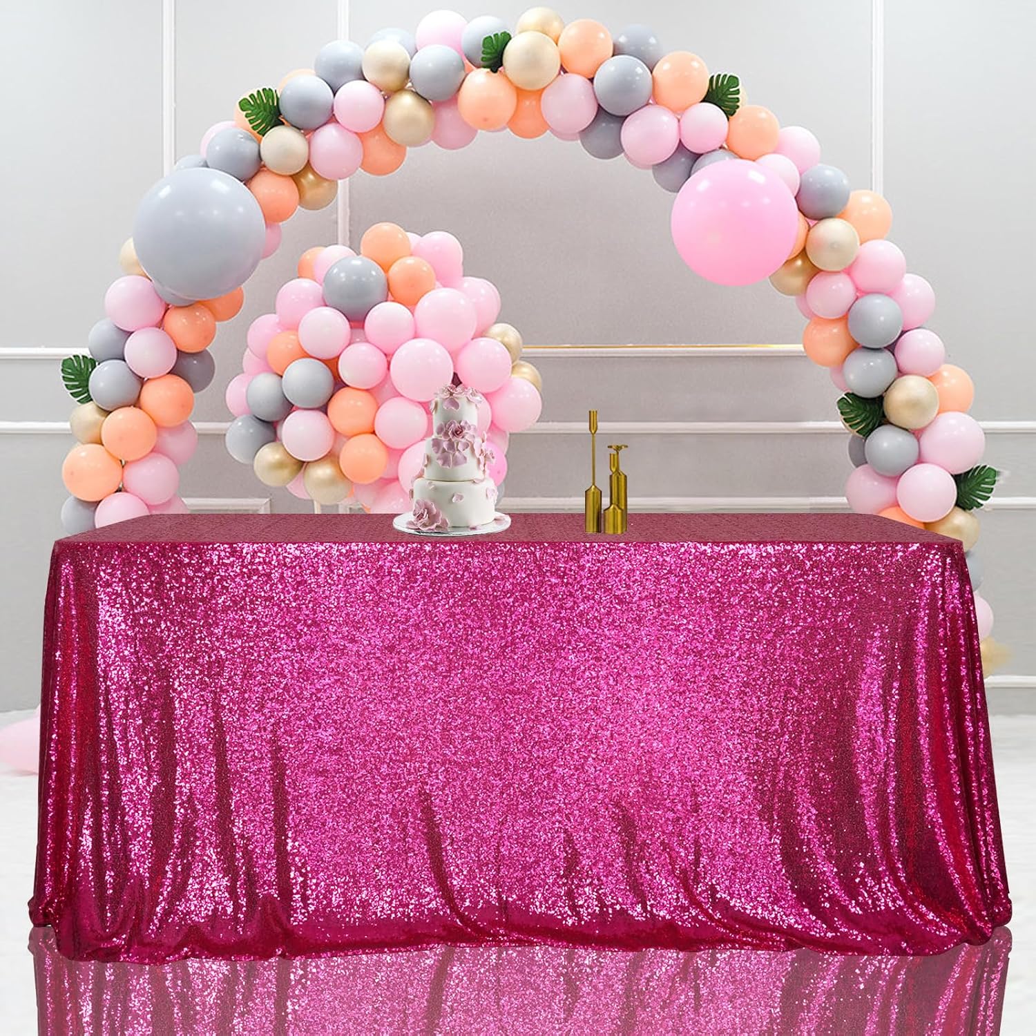 SquarePie Sequin Tablecloth 50 x 72 Inch Hot Pink Glitter Table Linen for Wedding Party