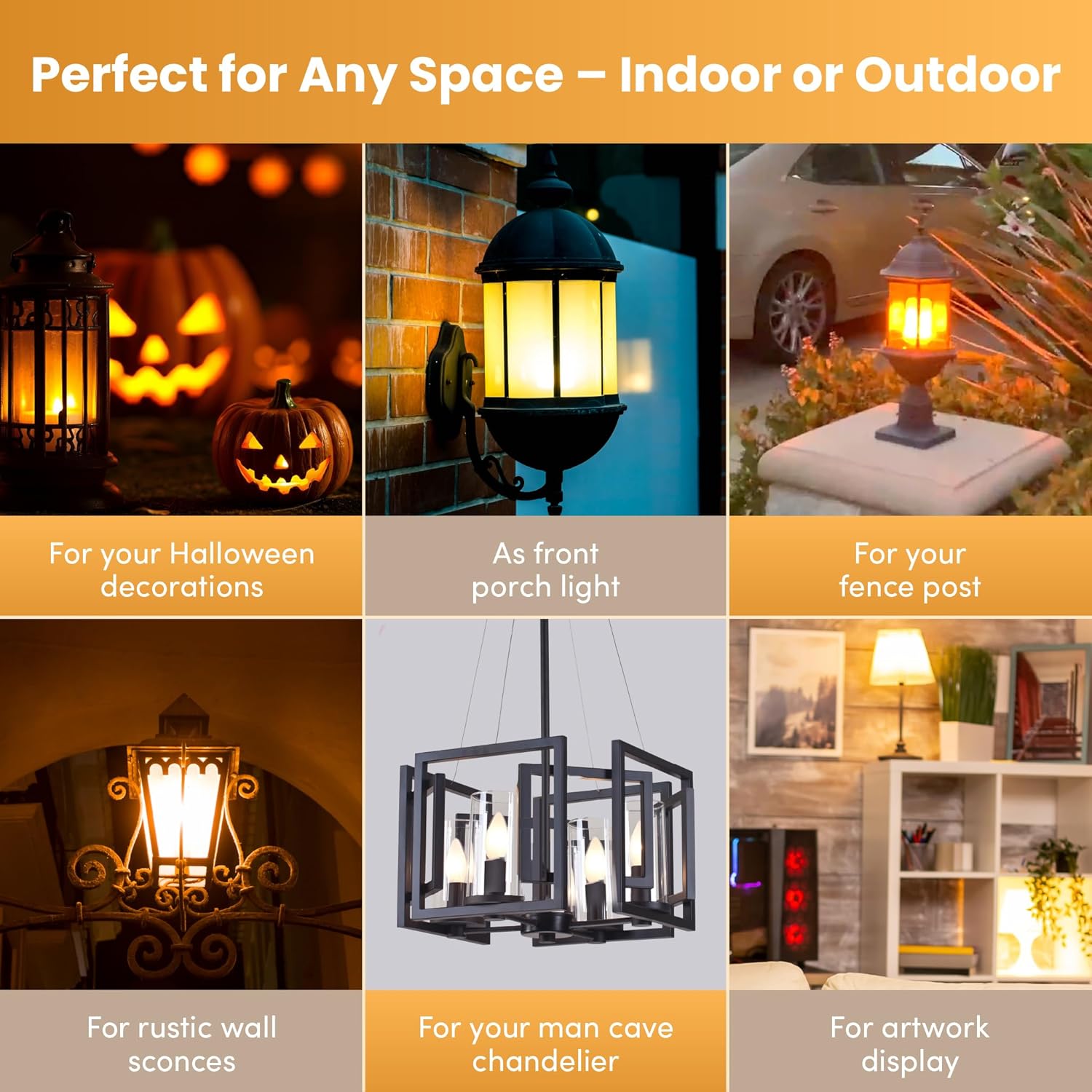 - INDOOR AND OUTDOOR ENCLOSED FIXTURE USE - Get A Really Awesome Fire Flame Look In Both Covered Fixtures or Bare Installations.