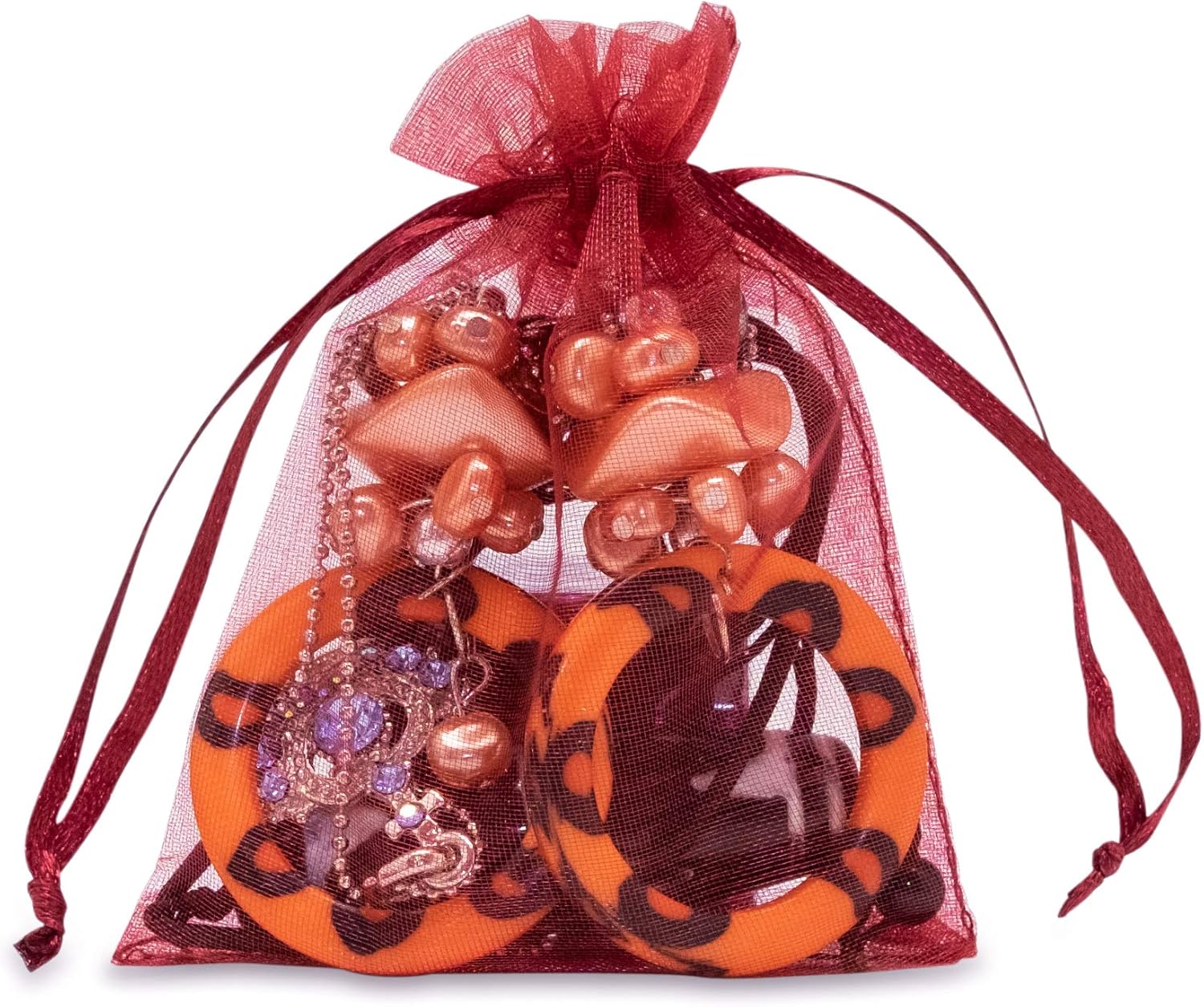 TheDisplayGuys 100-Pack 3x4 Maroon Sheer Organza Gift Bags with Drawstring, Jewelry Candy Treat Wedding Party Favors Mesh Pouch
