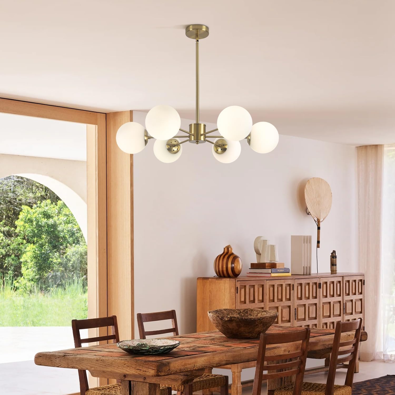 - Glass Sputnik Light: The globe dining room chandelier is designed with high quality metal and milk glass globe shade, six spherical lights extend from the central column in brass, adding an elegant and luxurious touch to your space