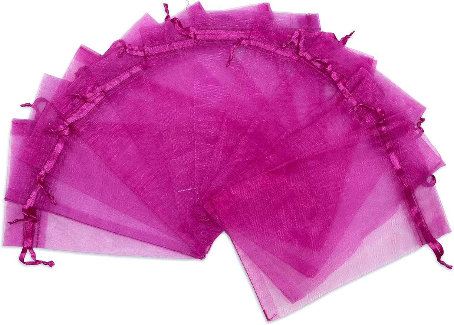 TheDisplayGuys 48-Pack 2" x 2-3/4" Hot Pink Sheer Organza Gift Bags with Drawstring, Jewelry Candy Treat Wedding Party Favors Mesh Pouch