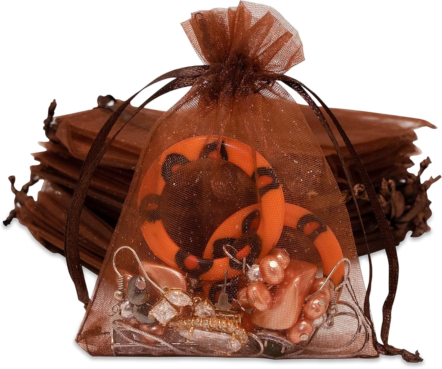 TheDisplayGuys 48-Pack 3x4 Brown Sheer Organza Gift Bags with Drawstring, Jewelry Candy Treat Wedding Party Favors Mesh Pouch