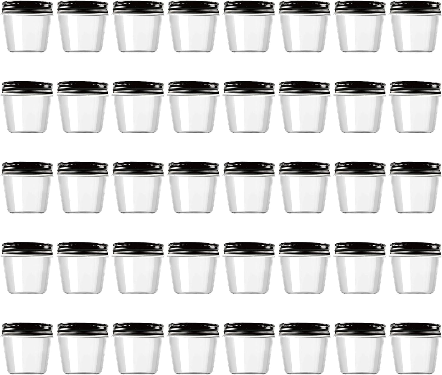 Novelinks 4 Ounce Plastic Jars with Black Lids - Refillable Round Clear Containers for Kitchen & Household Storage - BPA Free (40 Pack)