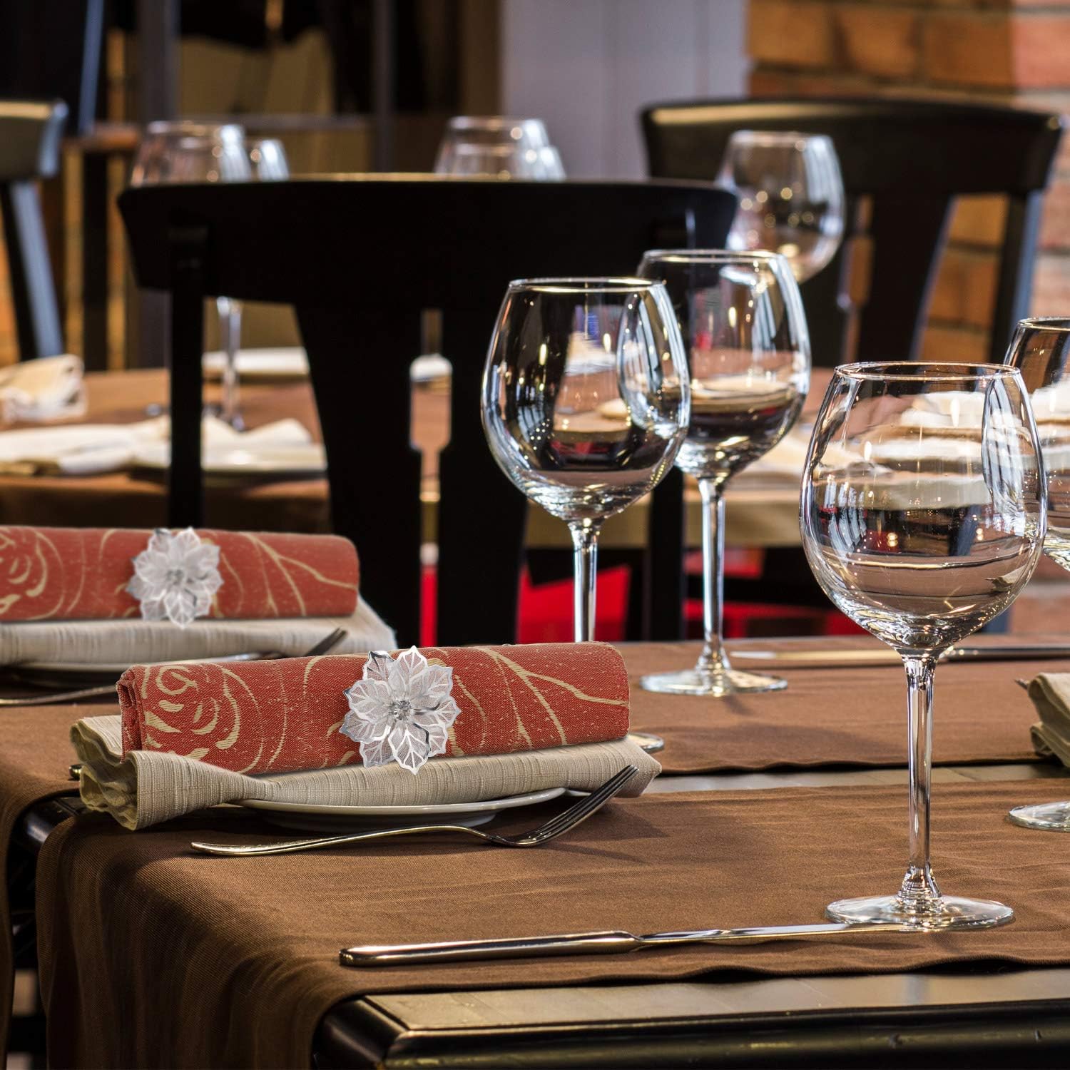 - Glittering appearance: the diameter of napkin ring holder is 1.69 inches and the flower is about 1.96 inches, the faux rhinestones will shine brilliantly in the light, beautiful design brings elegance to your table, and makes your food look more delicious