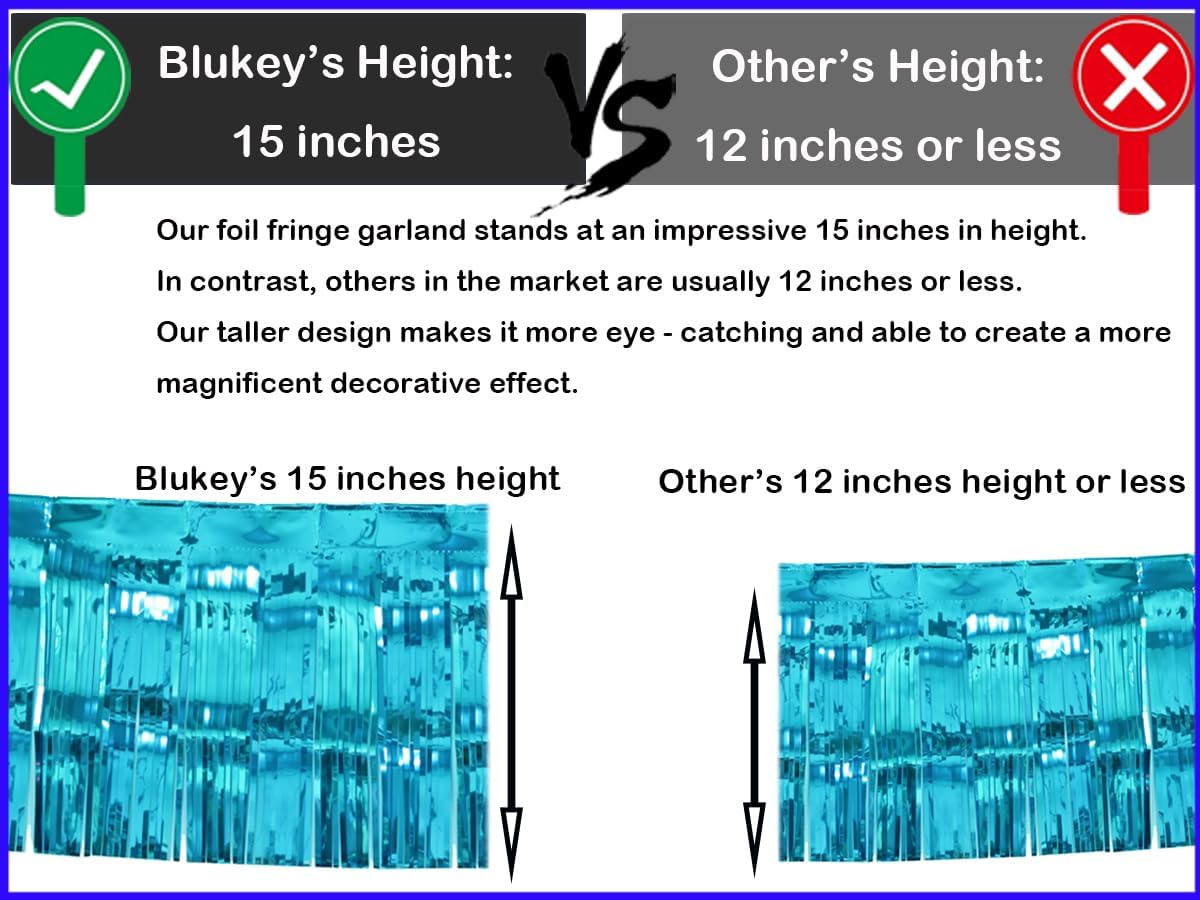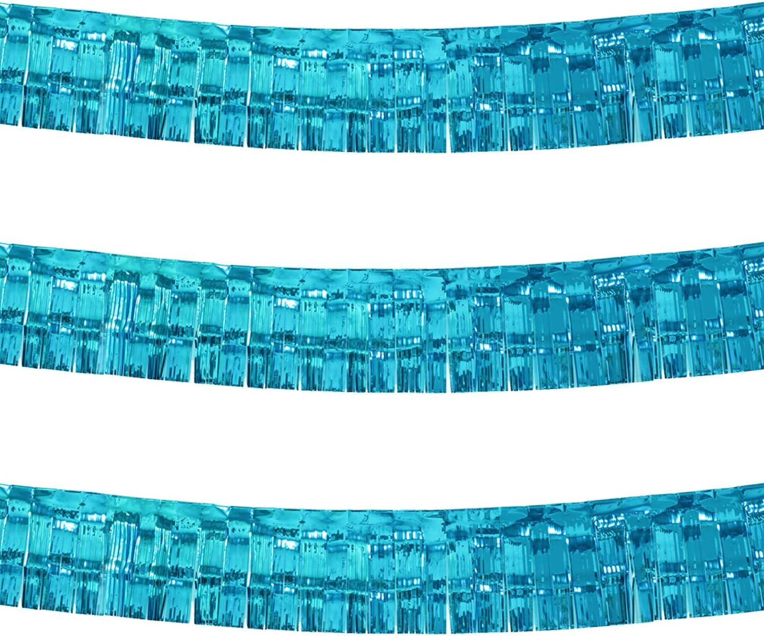 Thick 10 Feet by 15 Inch Turquoise Foil Fringe Garland - Pack of 3 | Shiny Metallic Tinsel Banner for Parade Floats, Bridal Shower, Wedding, Birthday, Christmas | Wall Hanging Drapes (3)