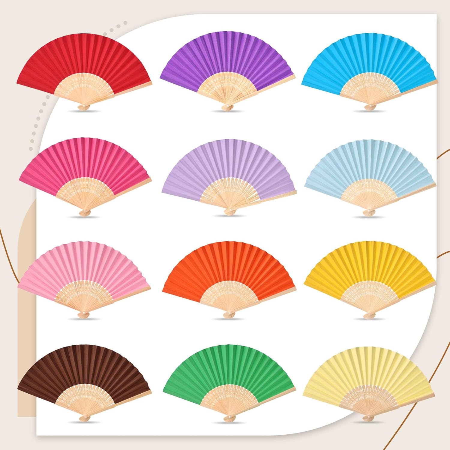 - Party and Wedding Must-Have · Photo-Ready Prop – This pack includes 12PCS multicolor paper folding fans (each about 8.3 inches long), a bright and versatile choice for weddings, multicolor party decorations, birthdays, and summer events. Each folding fan is easy to open and close with one hand, moving quietly and smoothly to maintain the joyful atmosphere. Whether for dancing, chatting, or photo moments, they add color, motion, and style to every celebration.