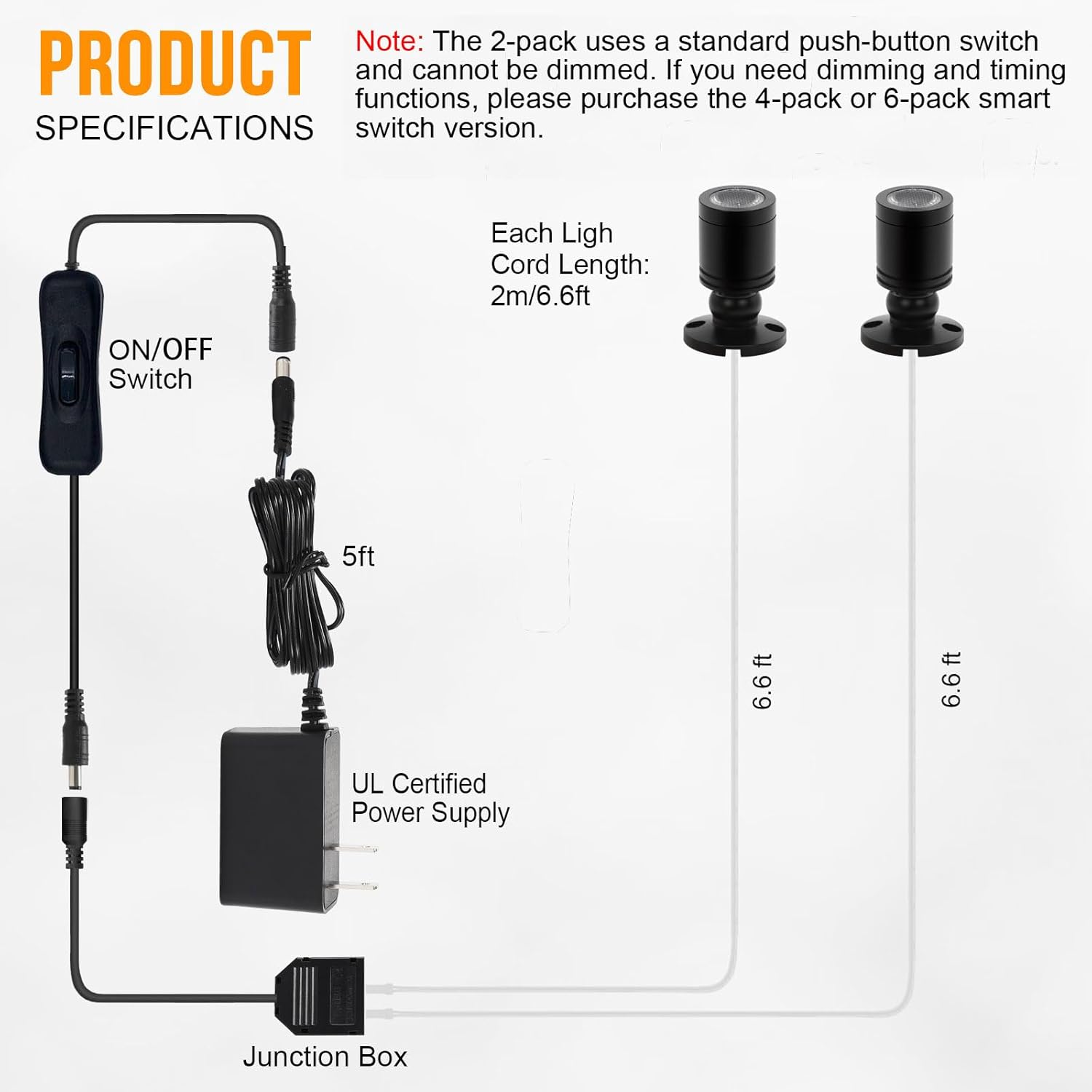 - 【Comfortable & Bright Illumination】Each display lights has 1.5W,100 lumens and 6.6ft length cord.Soft White 3000K,provide high-color accuracy and natural, non-flickering lighting, ensuring your eyes stay comfortable while enhancing your space.Note: The 2-pack comes with a standard push-button switch, which is easy to operate with a simple press for on/off control, but it cannot be dimmed.