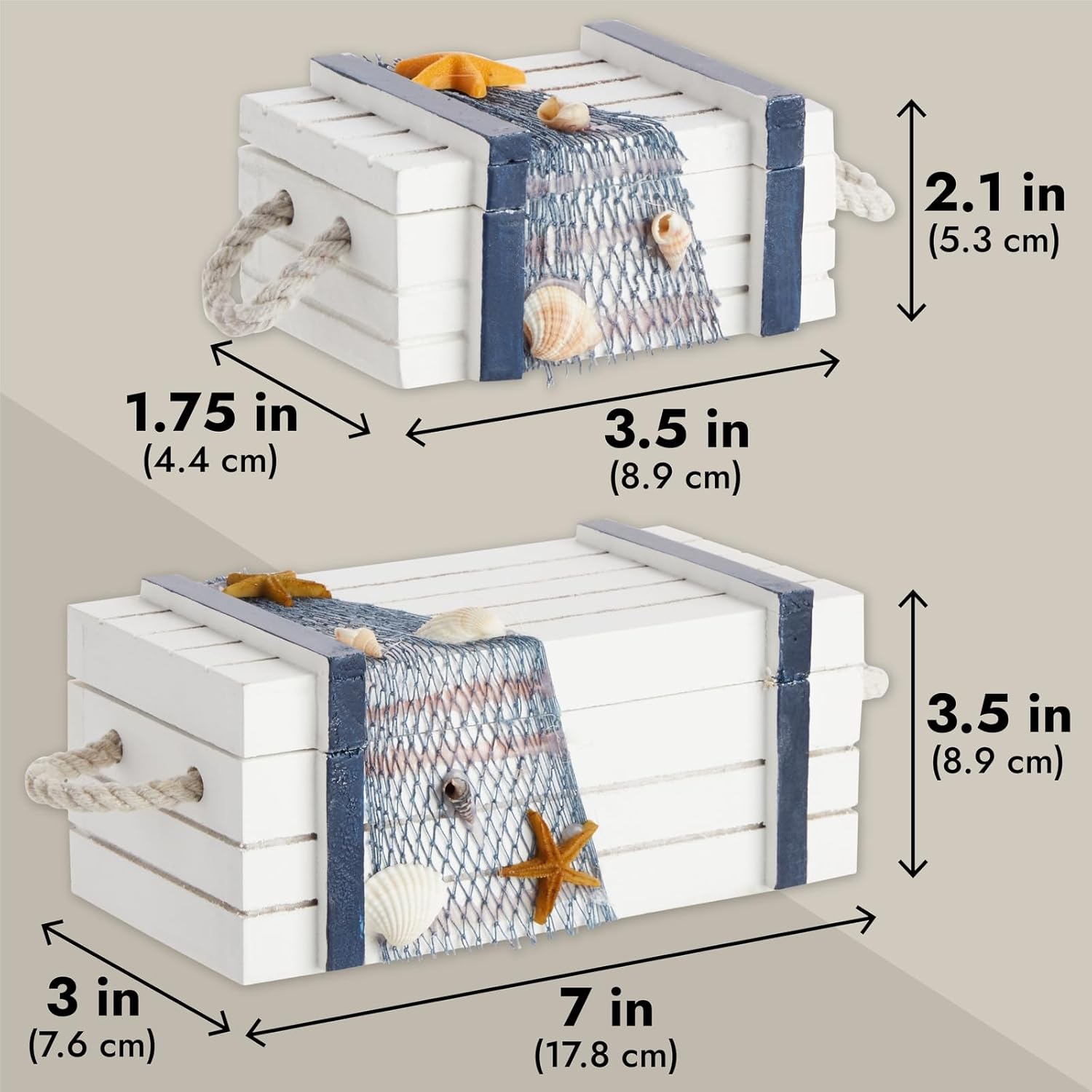 - Superior Craftsmanship: Crafted from high-quality engineered wood, each box features a sturdy hinged opening mechanism. The nautical embellishments, such as starfish and seashells, make these boxes an ideal choice for beach themed room decor