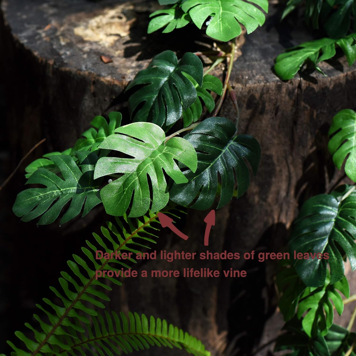- Leaf garland decorations are bendable to different angles, making these plant garlands convenient for different decoration styles, shapes and flexible for various DIY décor. Silk monstera garland is easy to put up and take down.