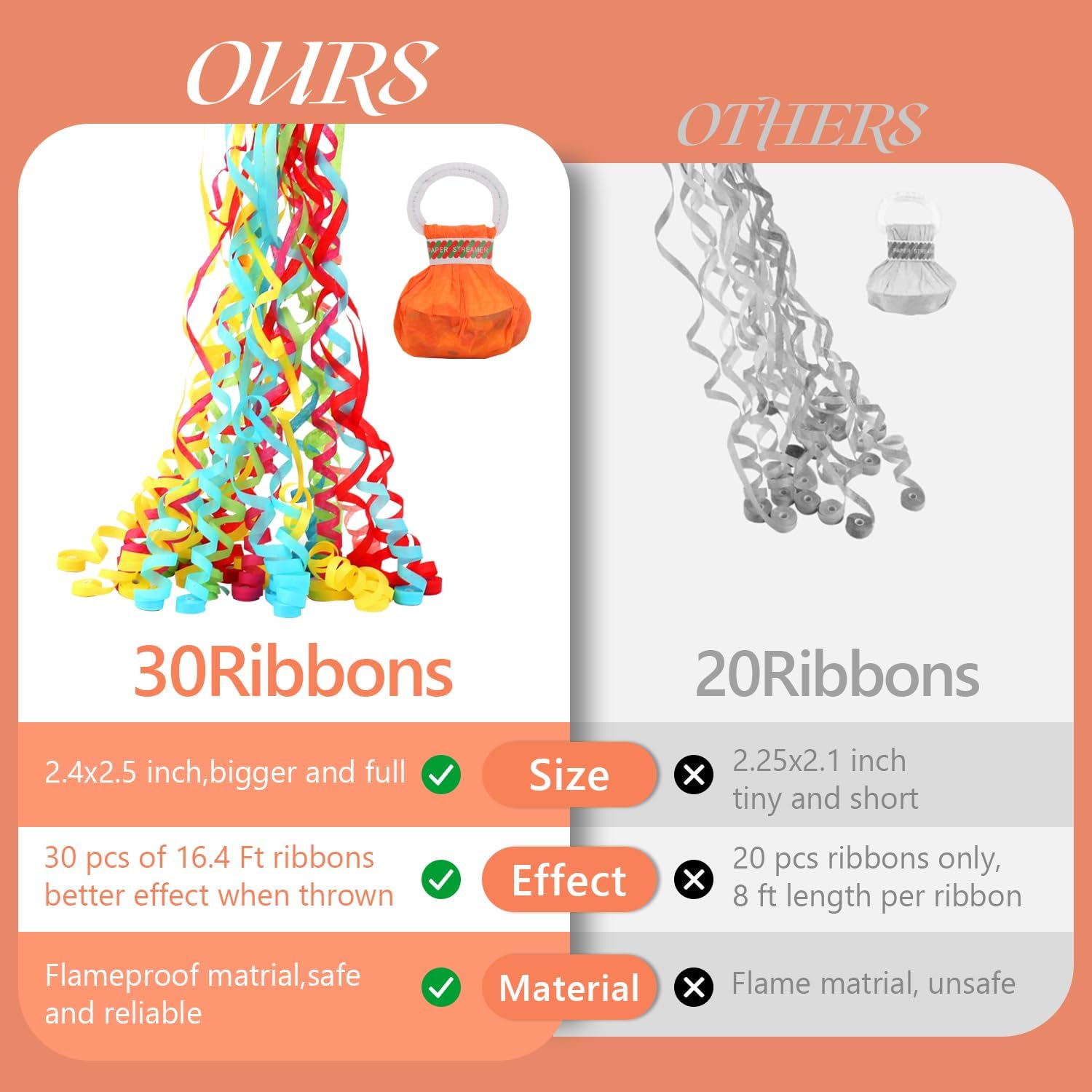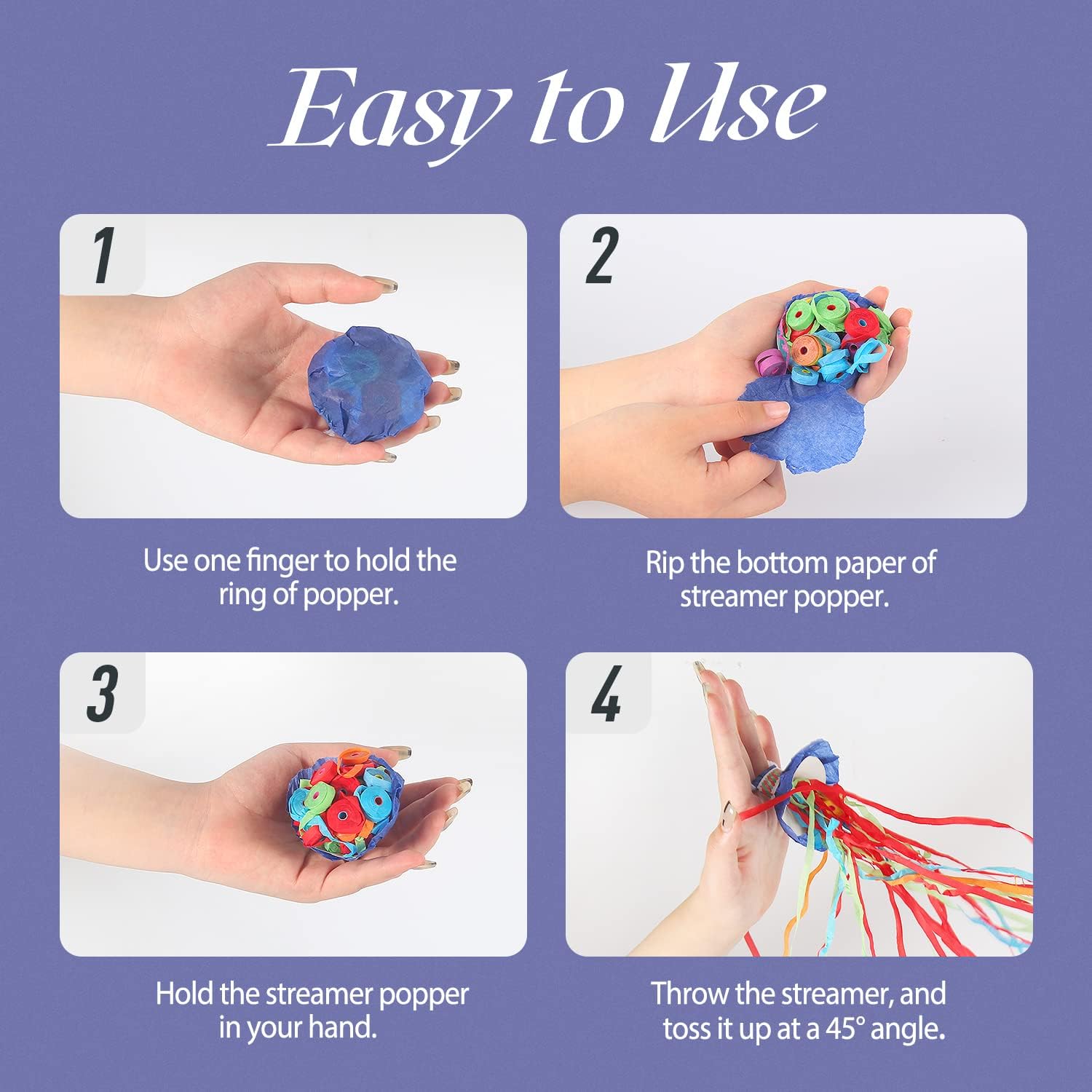 - Easy to Use : Use one finger to hold the ring of popper, then tear the paper in the bottom of streamers, then hold the streamers in your hand, throw them away like a magic trick. It's easy to pop out, no mess and easy to clean up after party
