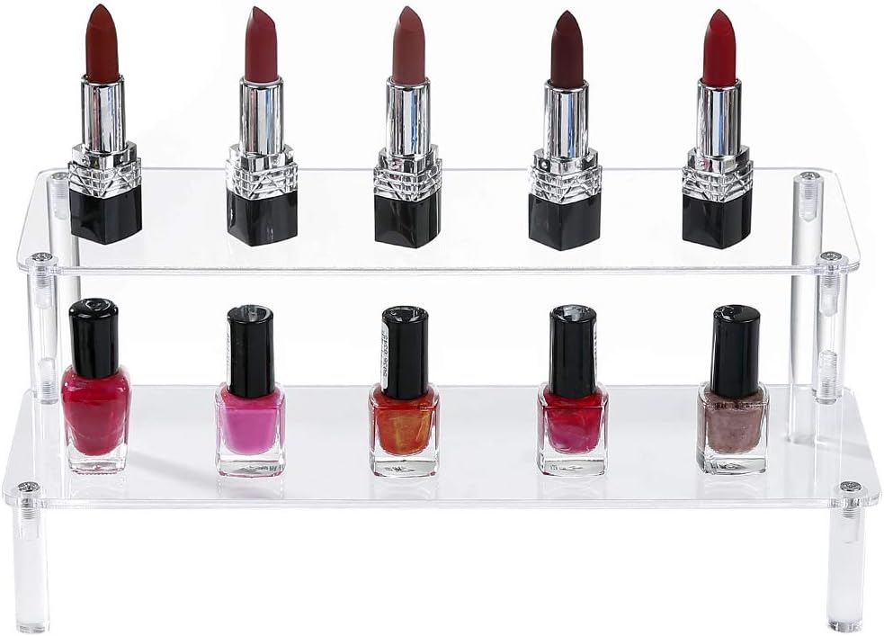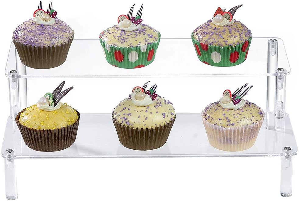 BYCY Acrylic Clear 2-Tier Riser Display Shelf for Figures, Desserts Holder, Collections Organizer and Cosmetic Items Shelf (12" x 6.9" x 4.25")