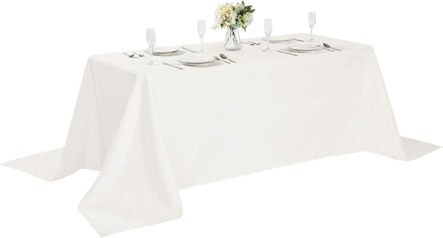 Rectangle Tablecloth 90x132 inch Washable Polyester Fabric Table Cloth for Wedding Party Dining Banquet Decoration(90x132, Ivory)