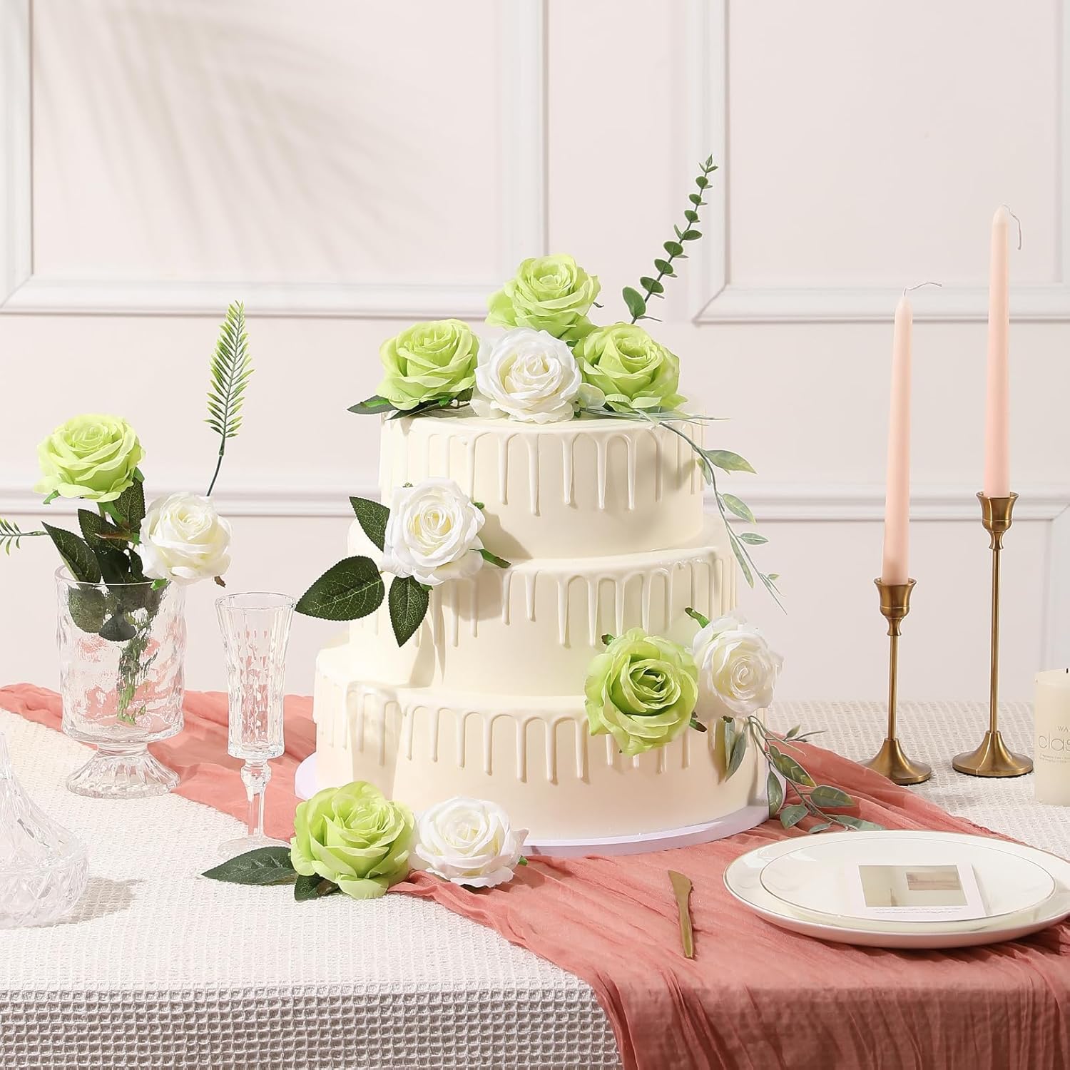 Tifuly Green Roses Artificial Flowers -12Pcs Realistic Single Long Stem Fake Silk Roses Bouquet for Party Home Wedding Centerpiece Hotel Office Decor