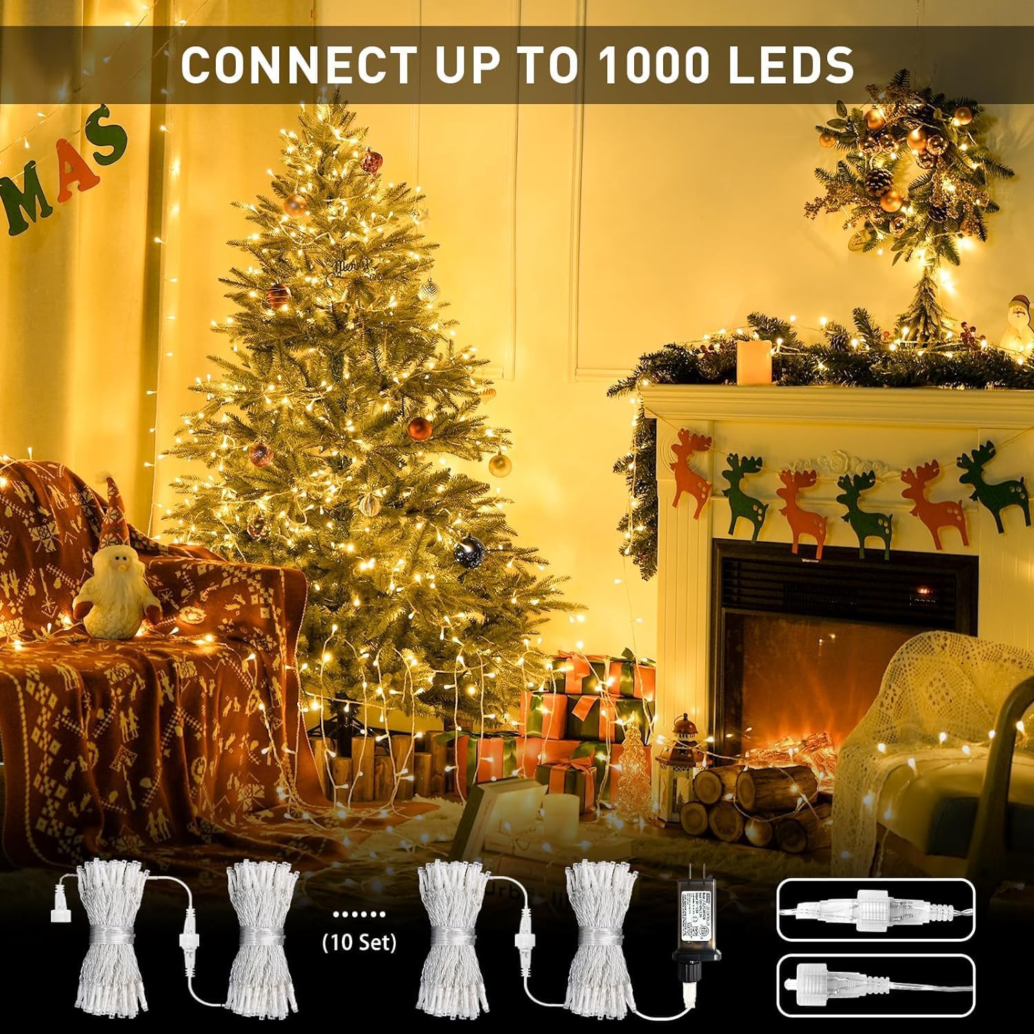 - 【CONNECTABLE SUPER BRIGHT CHRISTMAS STRING LIGHTS】 Our LED Christmas lights use advanced LED chips, each LED bulb shines with a 360 degree viewing angle, and the plug design of LED string lights greatly improve the stability of the bulb brightness. These lights are very soft and not dazzling, adding a charming ambiance to your decoration. In addition, LED string lights indoor with Male & Female Safe Plug, can up to extended to 4 light chains(maximum 1000 LED), greatly expand the lighting range