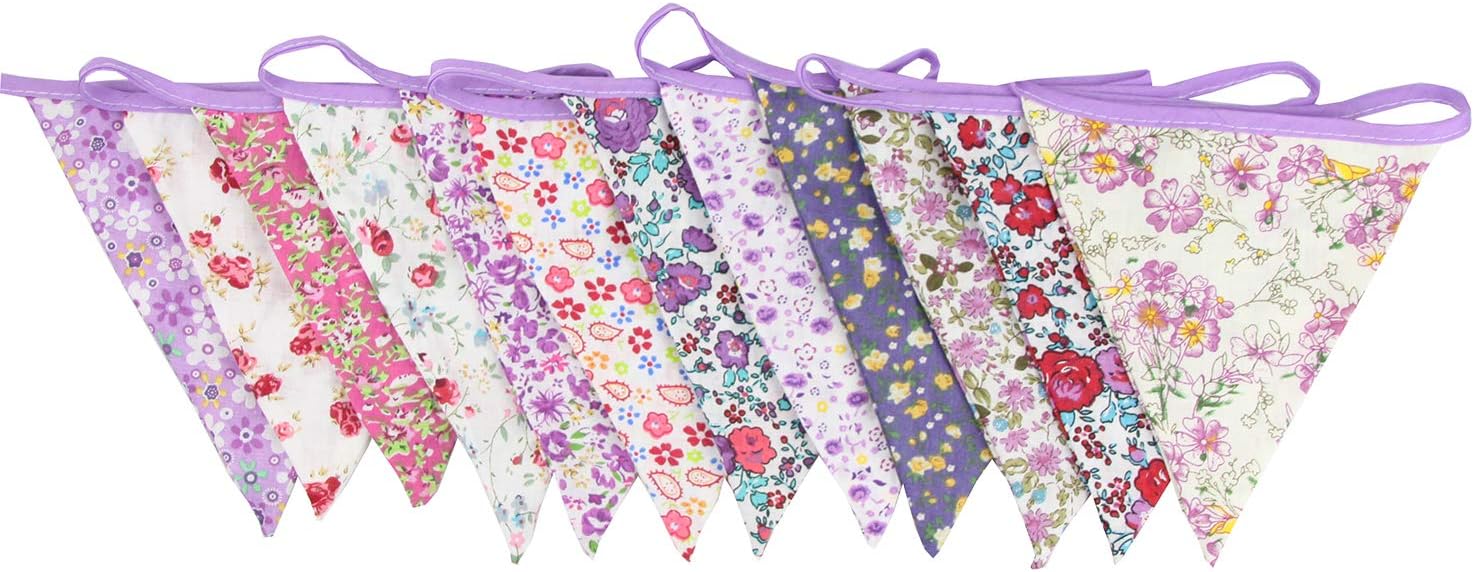 10M/32Ft Triangle Bunting Banner, 36 Pcs Cotton Fabric Flags Pennant Garlands for Birthday Party, Wedding, Baby Shower, Outdoor and Home Decorations (Purple)