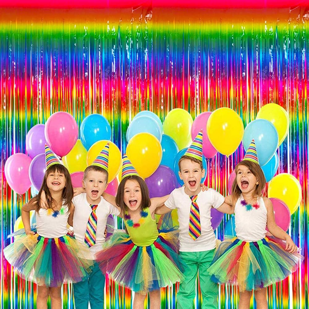 BEISHIDA 2 Pack Dark Rainbow Colorful Foil Fringe Curtain, Assort Color Tinsel Metallic Curtains Photo Backdrop for Birthday Party Wedding Engagement Bridal Shower