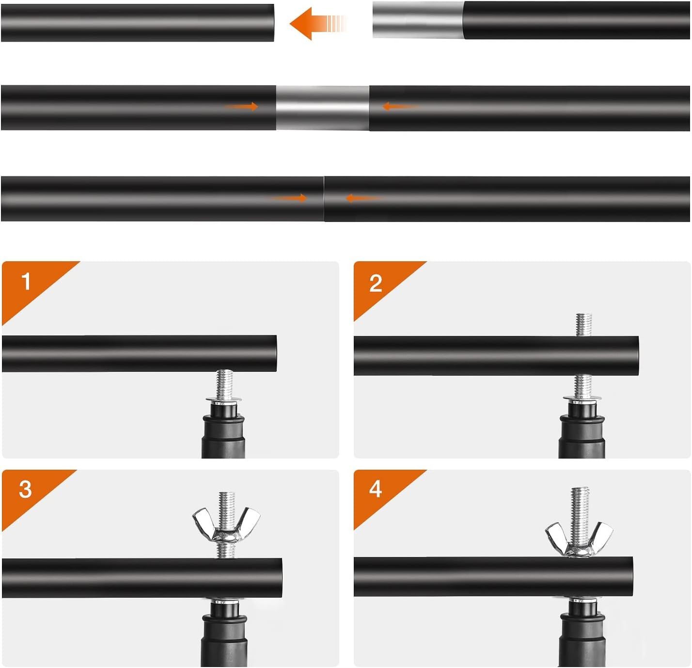 - 4 x Crossbar - Telescopic top crossbar with adjustable width: min width 5ft-max 10ft. The crossbar is easy to assemble and disassemble, can support canvas, muslin and paper background, etc