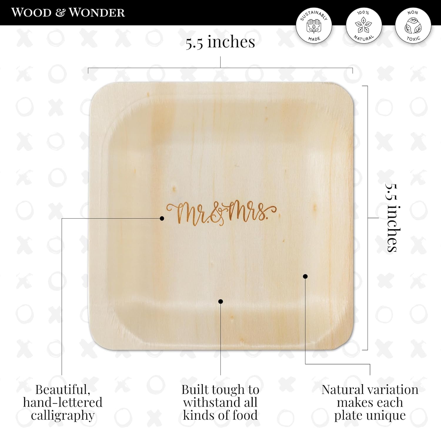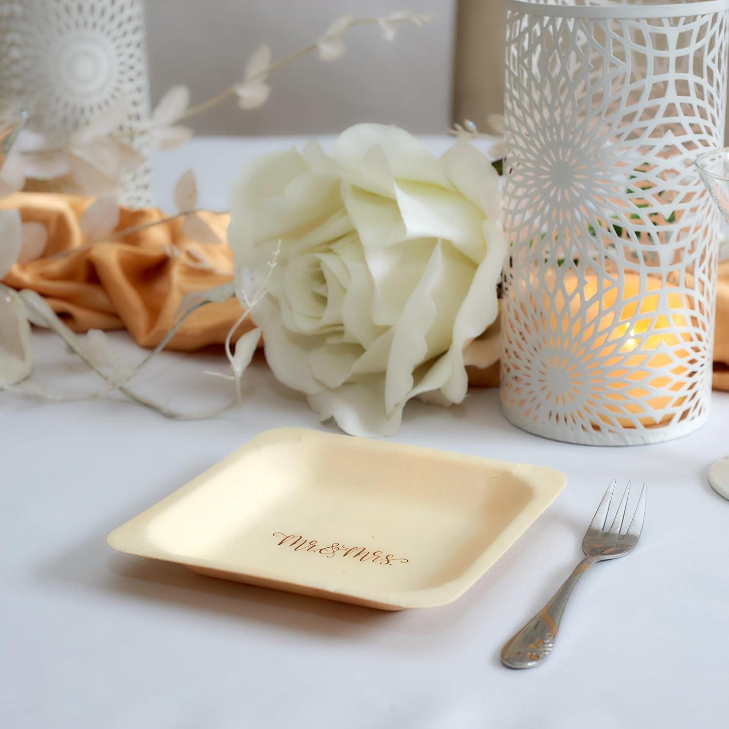 Mr. and Mrs. Disposable Wedding Plates β Rustic, Compostable Alternative to Plastic Plates for Wedding Receptions, Engagement Parties, and Rehearsal Dinners (Appetizer, 50-Pack)
