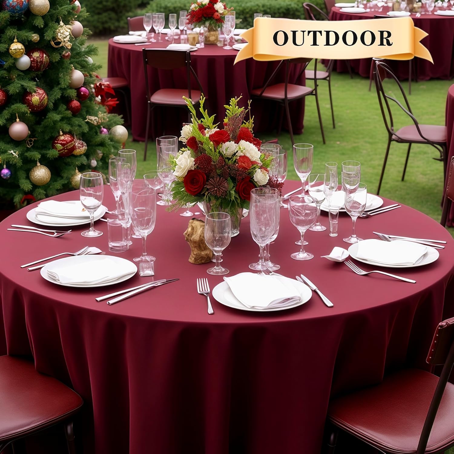 - HIGH QUALITY MATERIAL: Our tablecloth are crafted from high quality durable polyester fabric, perfect to protect and decorate your tables. The package will include 1 piece tablecloth measuring 120 inch round.