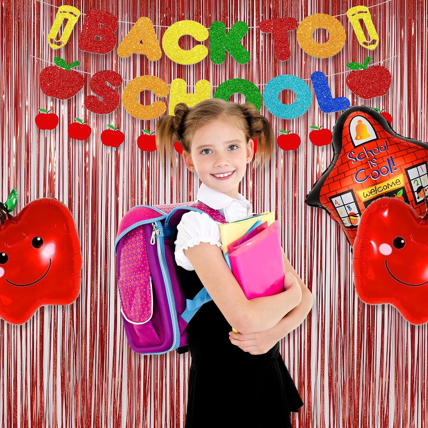 Foil Fringe Curtains Red Streamers Party Decorations - Melsan 3 Pack 3.2 x 8.2 ft red Fringe Backdrop Party Photo Backdrop for Back to School Birthday Party Baby Shower or Graduation Decorations