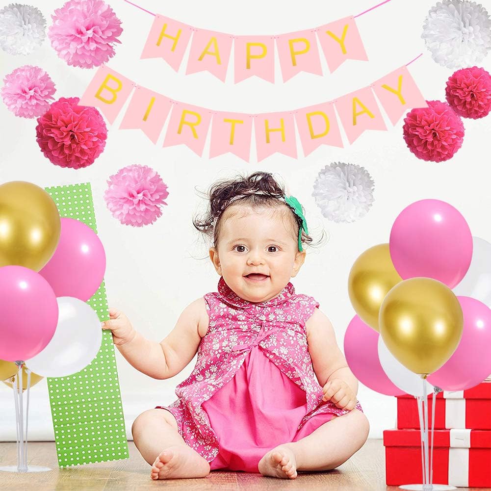 - Package Includes: The balloon stand kit includes 4 reusable balloon centerpiece table decorations and 12 inch 32 pcs Latex Balloons(12 pink balloons,12 white balloons,8 gold balloons),glue point dots,balloon pump,balloon clips,and tie tool.You don’t need to waste money to buy balloons