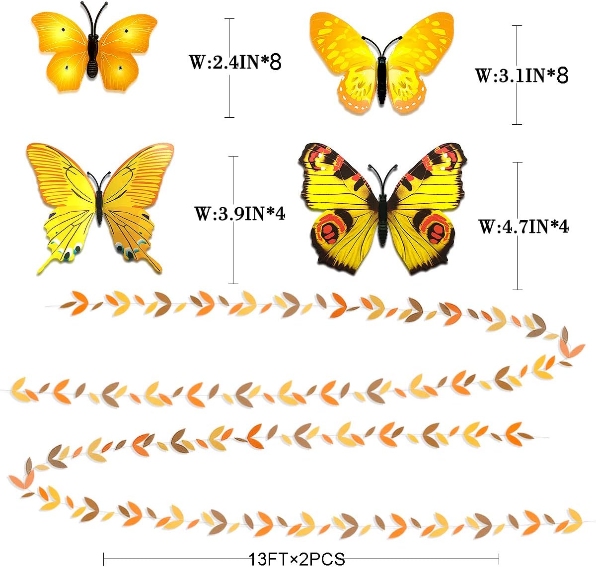 - 🧡PACKAGE CONTAINS- 2×fall color leaves garland,4×paper folding fan,8×paper flower pom poms,1×paper beige white lantern,1×paper orange lantern,1×paper brown lantern,1×paper yellow lantern,24×butterfly sticker.4×orange ribbon.