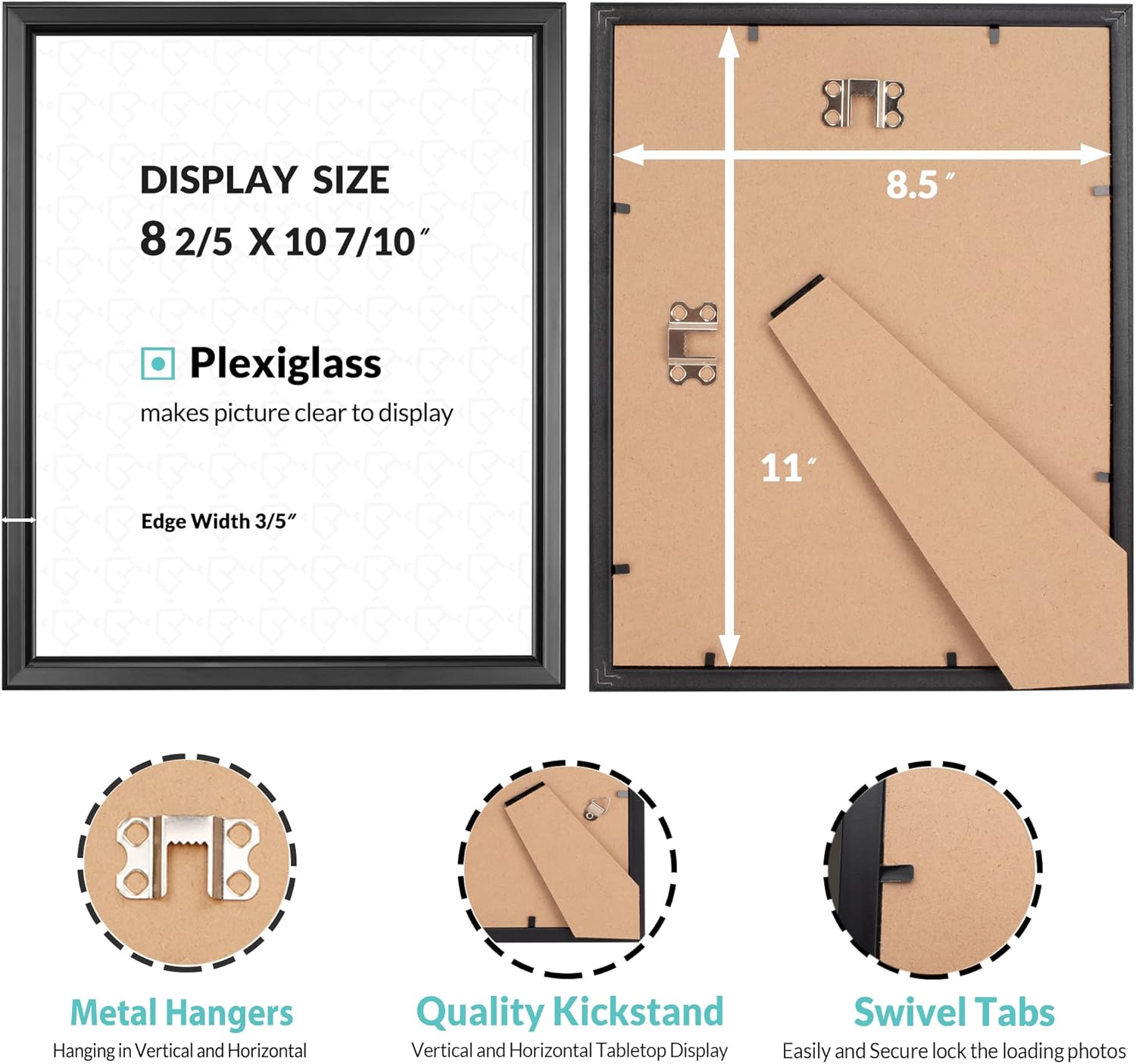 - WALL MOUNT or TABLE TOP- With triangular hangers already installed on the backpanel, simply hang it on a wall hanger to easily hang artwork or photos, either vertically or horizontally.