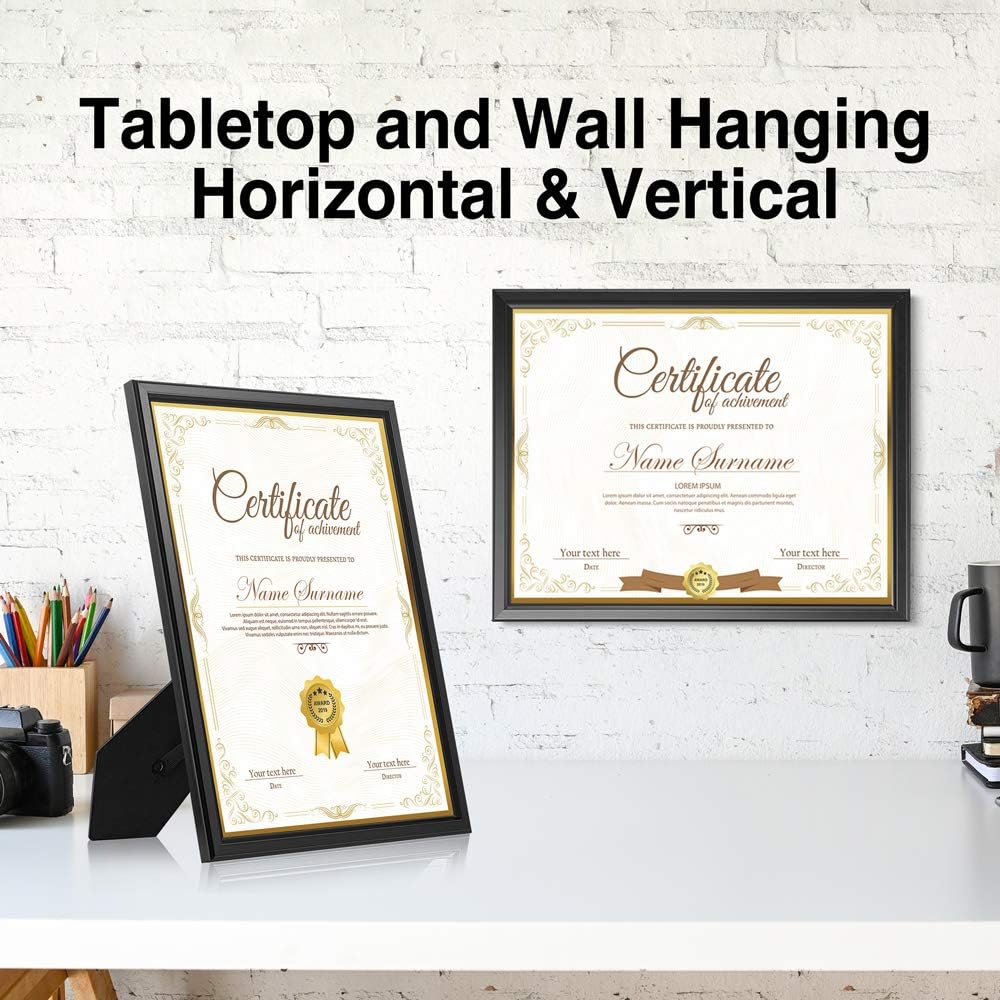 - PACKAGE INCLUDES - Set of 12 black frames, fits standard 8.5x11 inches pictures, photos, prints, with real glass to protect against dust and moisture. Tips: wall hooks or fasteners are not included in the package.
