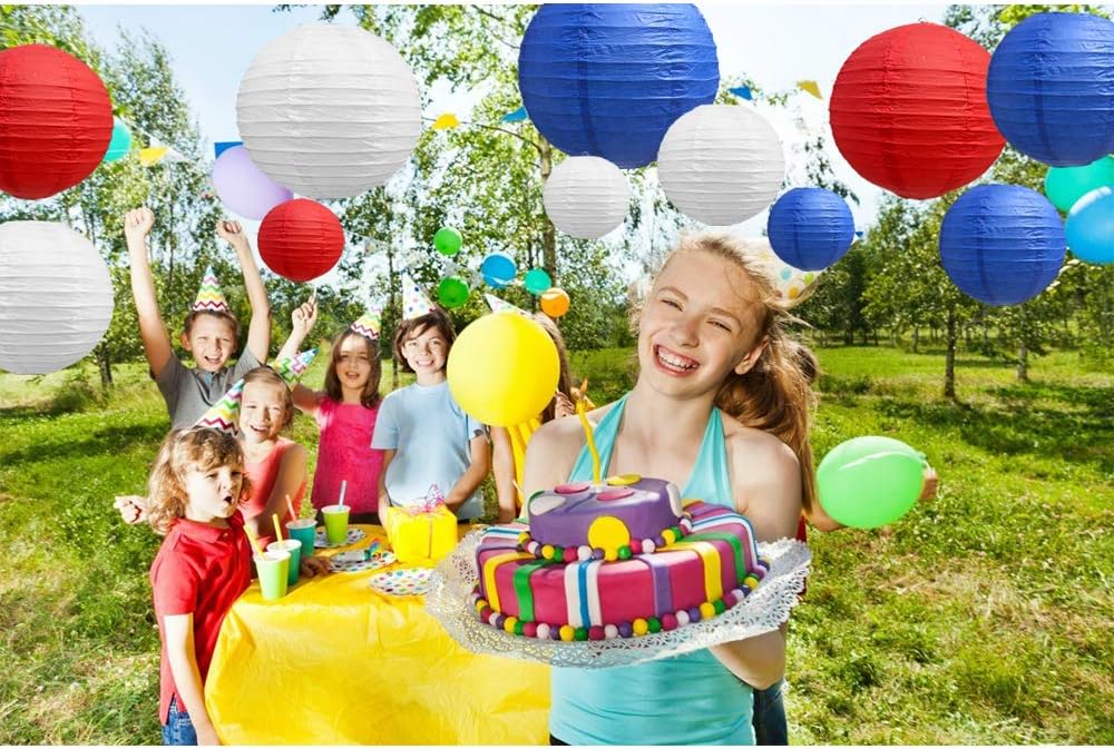 - 【 Three colors and five sizes】: 21 paper lantern sets are available in three colors: red,dark blue and white, including 4 inches, 6 inches, 8 inches, 10 inches and 12 inches.