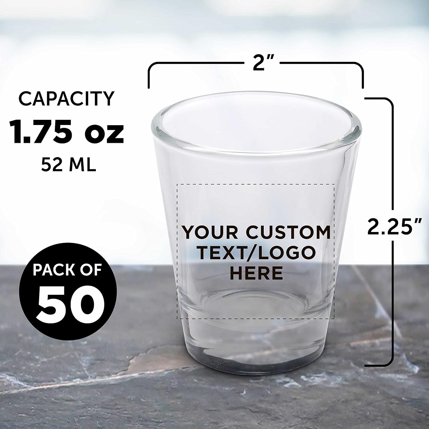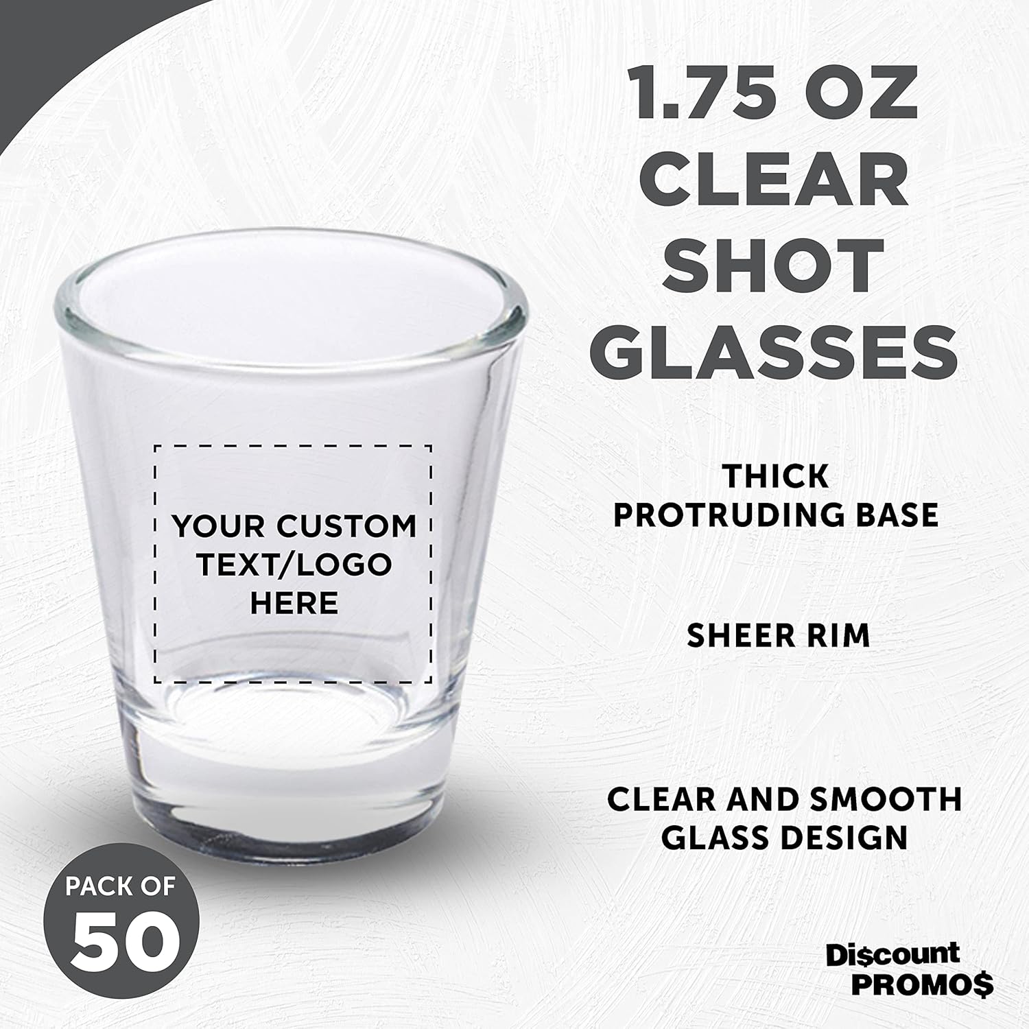 Custom Shot Glasses 1.75 oz. Set of 50, Personalized Bulk Pack - Great for Wedding Favors, Bachelorette Party Decorations, Party Fovors, Color Bottom - Clear
