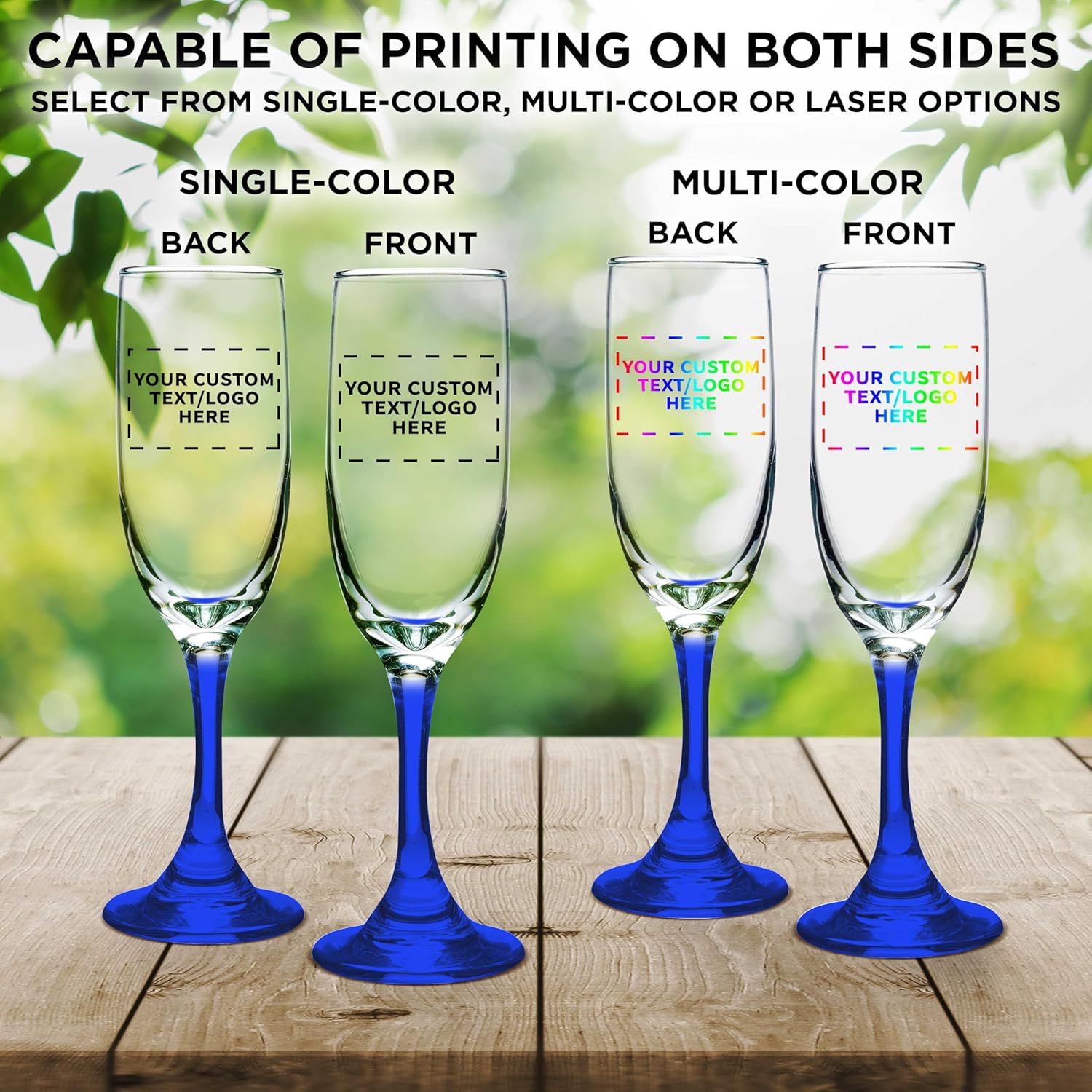 DISCOUNT PROMOS Custom Premiere Champagne Flutes 6.25 oz. Set of 10, Personalized Bulk Pack - Elegant Drinkware for Weddings, Events, & Promotional Gifts - Blue