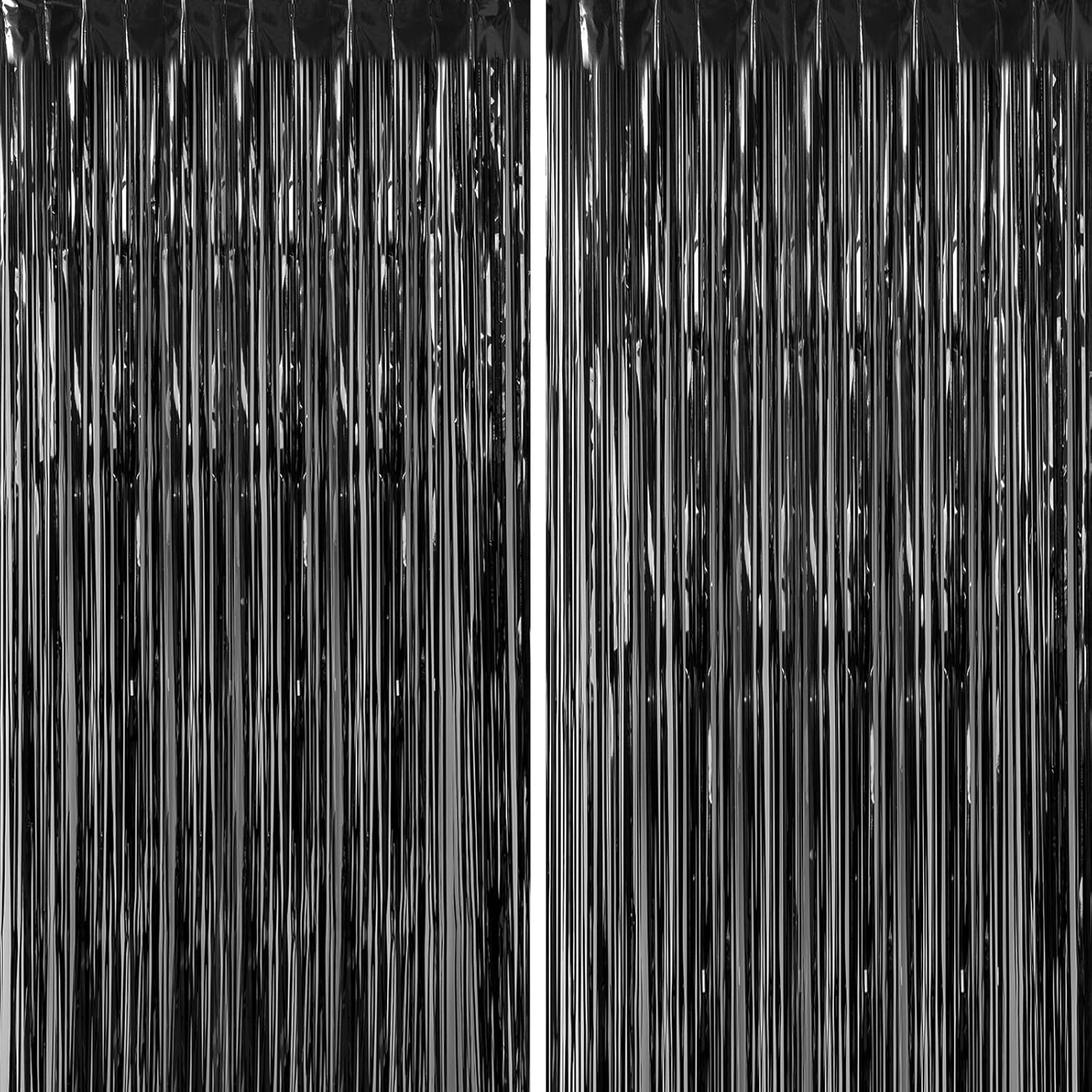 CHRORINE 2pcs 3ft x 8.3ft Black Tinsel Fringe Curtains Streamers Photo Backdrop for Birthday Graduation Halloween Anniversary Party Decorations